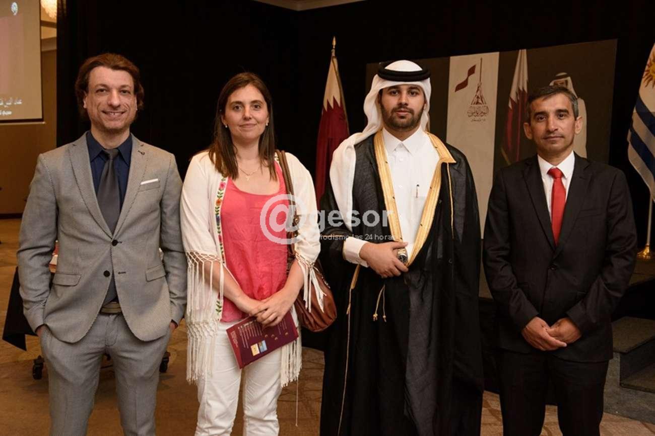 (En la foto el músico Ramiro Schiavone, la sra. Victoria Banchero de Palo Solo, el encargado de negocios de Qatar en Uruguay y Freddy Planchón).