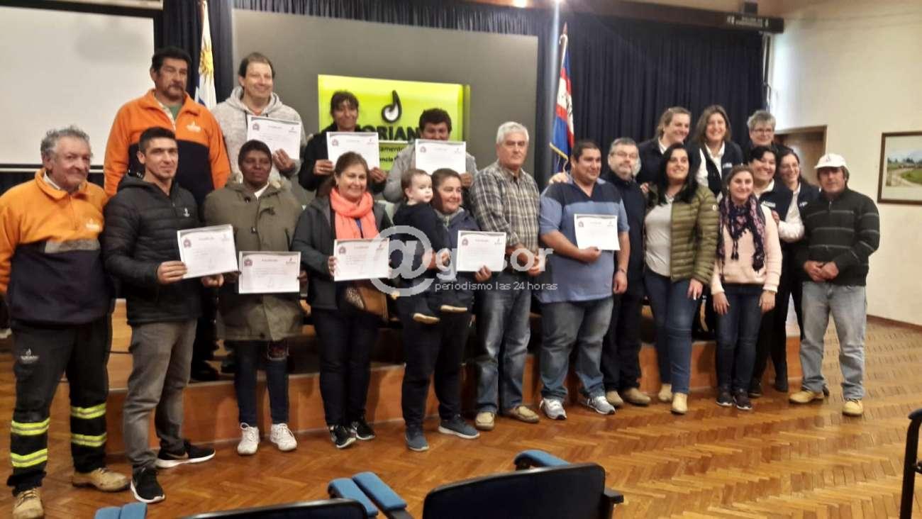 En ceremonia llevada a cabo en el salón “Eduardo V. Haedo” de la sede comunal, se entregaron los diplomas a quienes recibieron capacitación y también trabajaron en régimen de pasantía durante los últimos cuatro meses. En la instancia acompañaron al Intendente Bascou, la presidente de la Junta Departamental de Soriano, la Sra. Mayka Acuña, el director del CEPE (Centro Público de Empleo), Jorge Potacek y la Directora de Administración de la Intendencia de Soriano la Dra. Alejandra Umpiérrez.