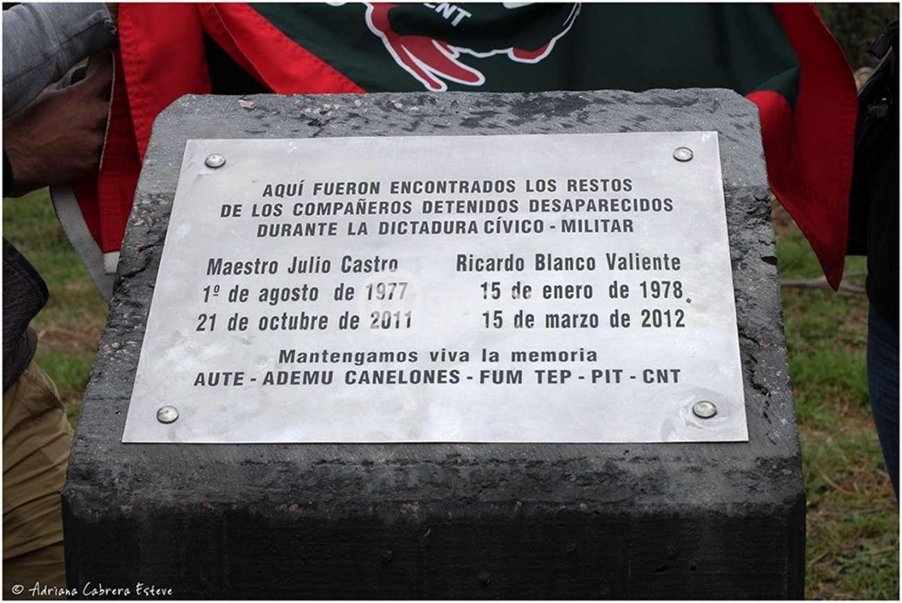 En Toledo, departamento de Canelones inauguraron este nuevo Sitio de memoria en el lugar donde hace unos años encontraron los restos Julio Castro y de Ricardo Blanco Valiente. La actividad promovida por la Comisión Nacional de Sitios de Memoria contó con alrededor de medio centenar de asistentes, entre las que estaban integrantes del gremio de UTE, organización gremial a la que pertenecía Ricardo Blanco.