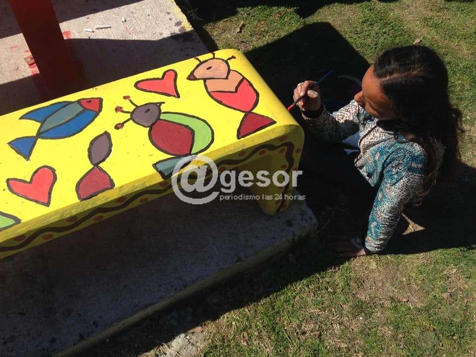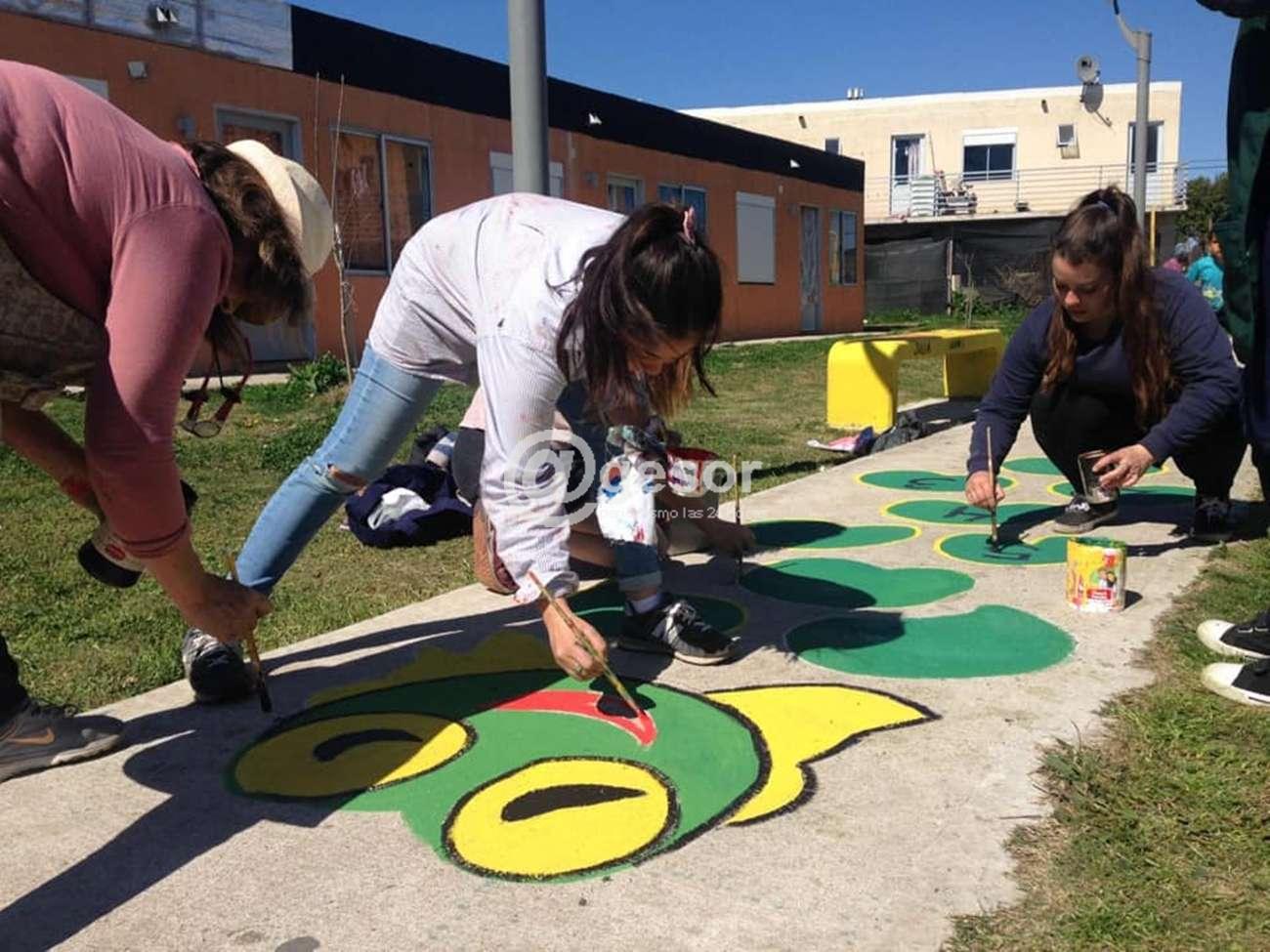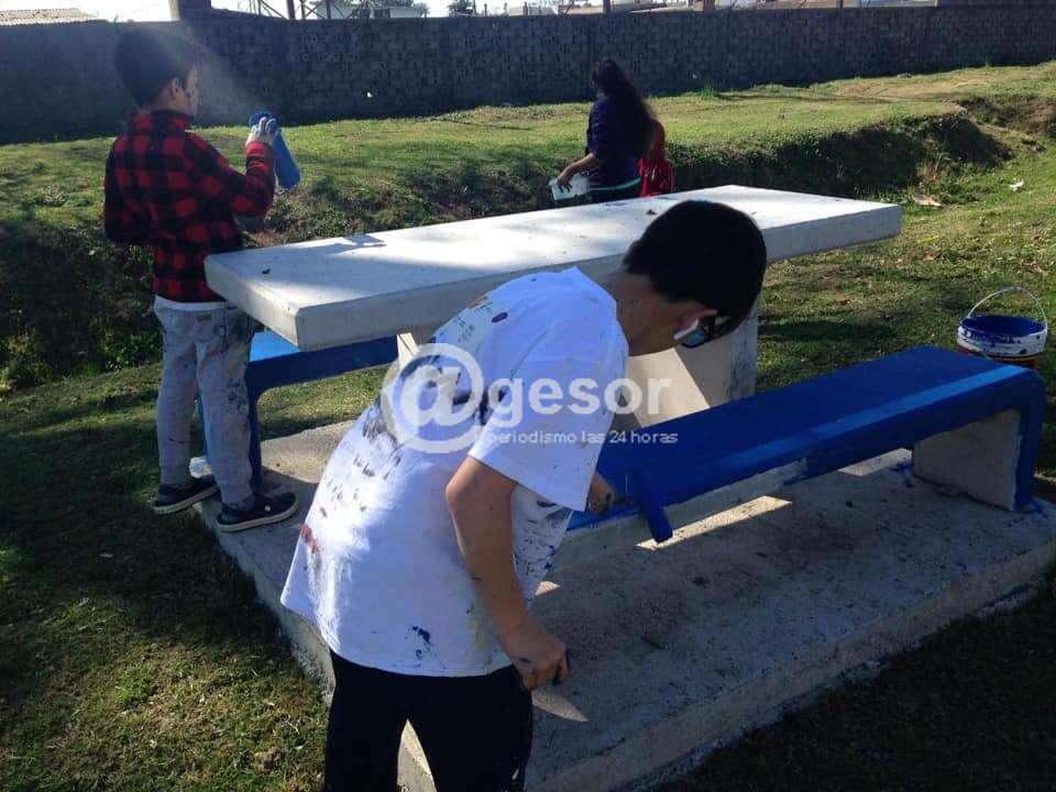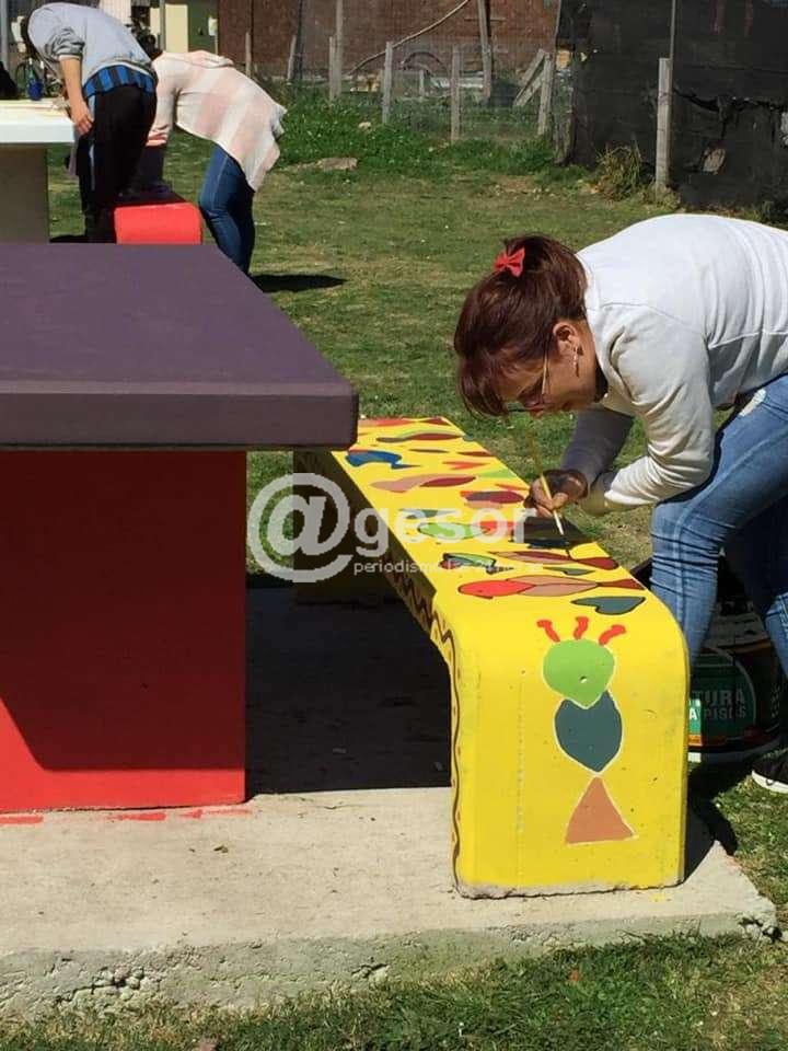 Entre todos pintaron mesas, bancos y caminos que conforman el espacio de recreación y esparcimiento del complejo.