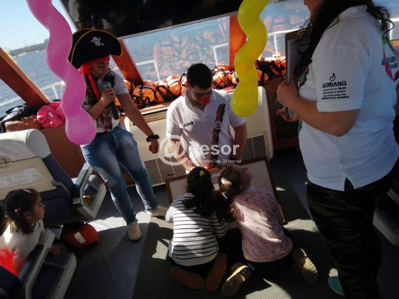 Se trató de un paseo para chicos acompañados por un adulto, donde los 45 participantes pudieron disfrutar navegando durante una hora y media frente a las costas de Mercedes, amenizando el tour con actividades recreativas y lúdicas, con la participación de los voluntarios de Soriano Joven, con obsequios y sorpresas para los chicos.
