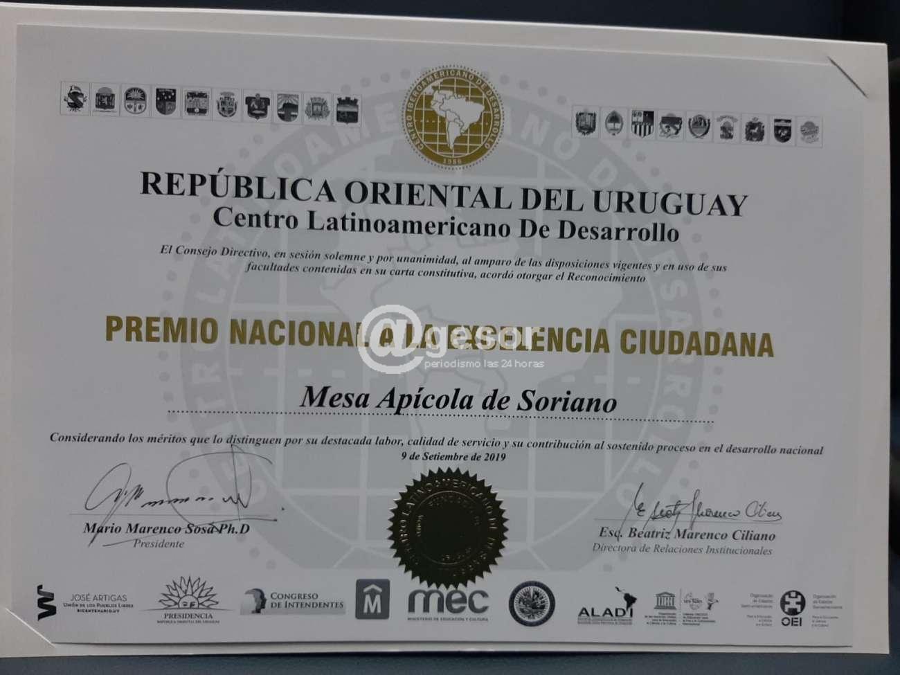 La Mesa Apícola Departamental fue la institución propuesta por la Intendencia de Soriano para este reconocimiento. Motivó esta nominación, el aporte del grupo al desarrollo y el crecimiento de la apicultura en nuestro departamento y por encarar la defensa del sector en todos los ámbitos. Se fundó en 2002, funcionando hasta el 2004, quedando en ese entonces sin funcionar por un largo periodo de tiempo, por diferentes motivos. En el año 2017 como consecuencia de la grave situación del sector apícola después de varias instancias con el apoyo del Dpto. de Desarrollo de la Intendencia de Soriano, la mesa Apícola es refundada el 20 de setiembre del 2017.