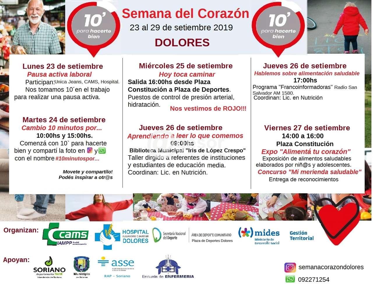 Con una serie de actividades se desarrollará la Semana del Corazón, en la ciudad de Dolores. Actividades promovidas por varias instituciones del medio bajo la consigna 10 ´ para hacerte bien.