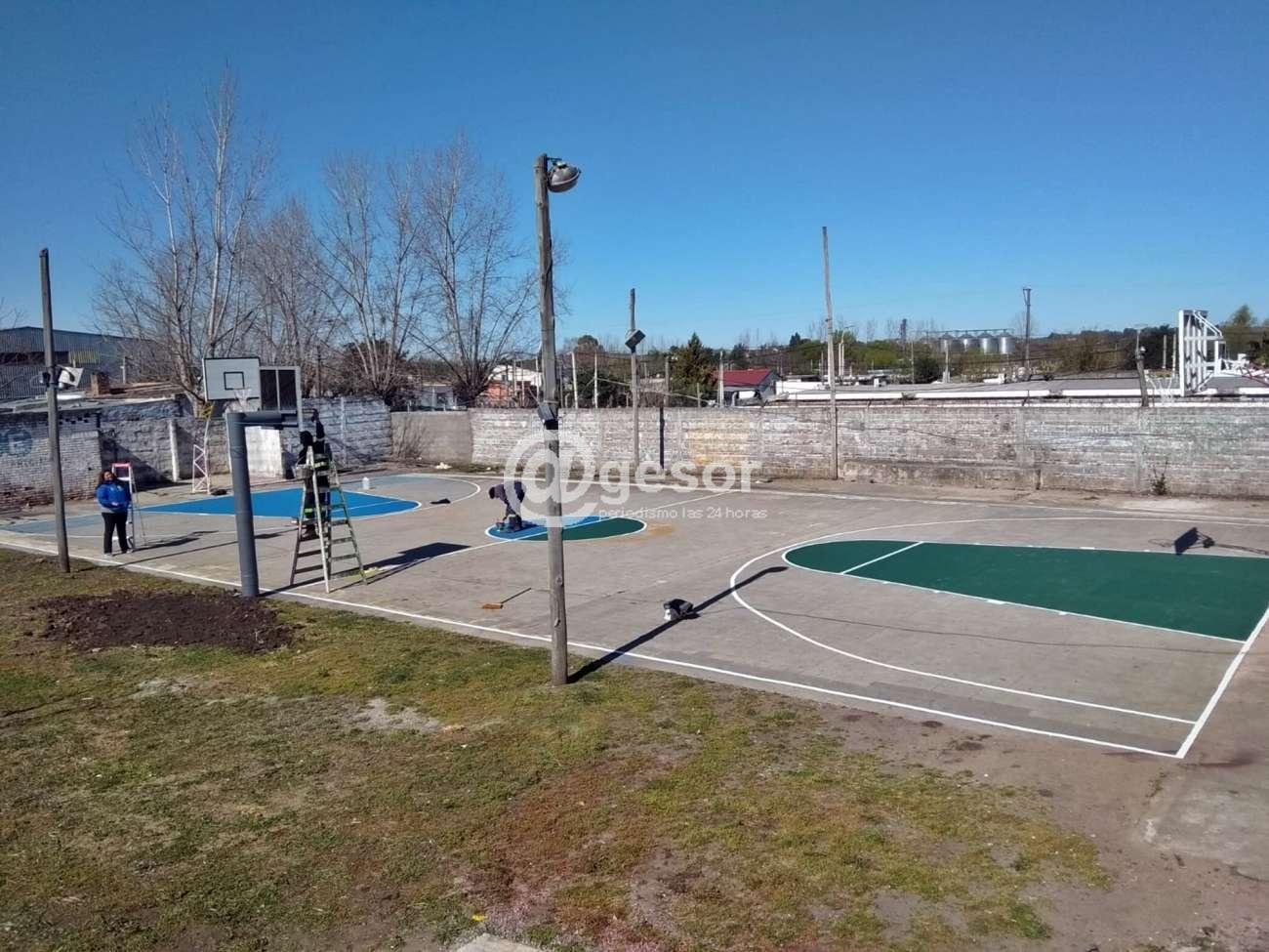 La comisión venía trabajando en la recuperación de la vieja cancha y el Proyecto se sumó con el pintado y colocación de torre y tablero de formativas.