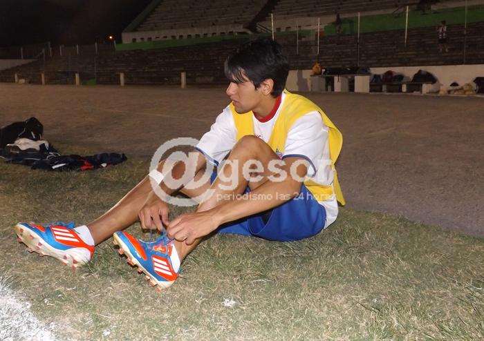 El volante Teodoro Luna practicó en el equipo suplente, pero debió retirarse antes de culminar la práctica por su lesión en una rodilla.