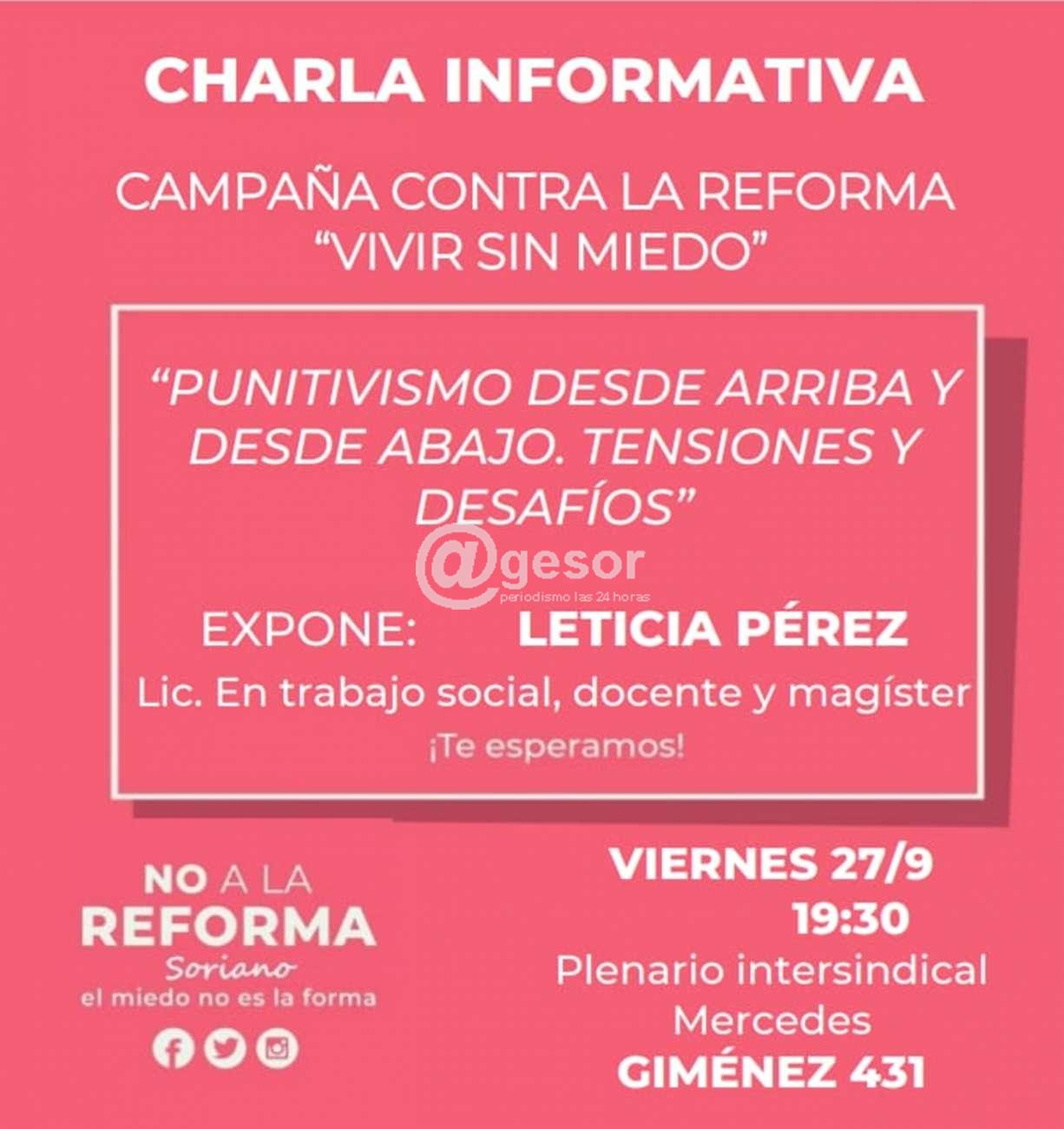 Este viernes en la sede del Plenario Intersindical de Soriano se realizará una nueva actividad en el marco de la campaña contra la reforma “Vivir sin miedo”.