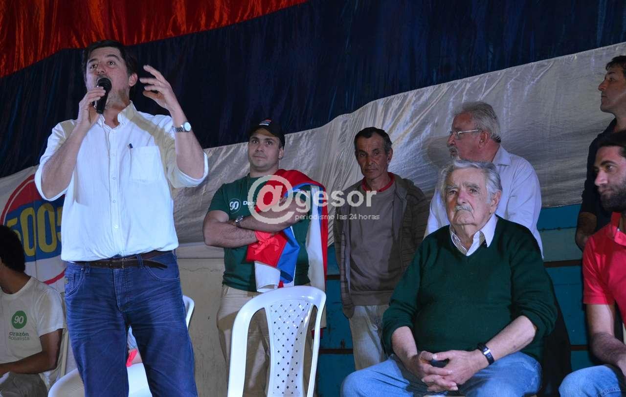 El ex  Presidente José  Mujica fue el orador central del acto realizado por las listas 90-609 y 5005  del Frente Amplio que postulan la candidatura de Enzo Malán a la diputación. El acto realizado  en el  gimnasio  del Club Olímpico   de  Mercedes contó con numeroso público   que  escuchó atentamente    el largo discurso del ex  mandatario.  En 42 minutos y medio Mujica  realizó  un    recorrido por la actualidad política del país, con su característica forma de ser  y de intercalar  anécdotas.  Dijo que quiere volver  al Parlamento “para pudrirle la cabeza” a lo más jóvenes  ya que entiende que  “hay que volver a Batlle, al viejo”  en alusión a José  Batlle y Ordónez.  Ya que entiende que se necesitan más políticas  sociales “porque sinó hacemos una sociedad de fieras”. Acotando “necesitamos un mundo que pueda suturar  las  diferencias” y que  “ahora como estamos  en campaña electoral me asustan los pelotazos”.  Criticando los anuncios de recortes  de los partidos tradicionales  y que entiende  necesario que  “hay que agrandar la torta, que es dar más trabajo”. Poniendo como ejemplo  la inversión que  hará en el país UPM con su planta de celulosa en el centro del país.  Y que “no podemos estar como el perro del hortelano que no come  ni deja comer”.