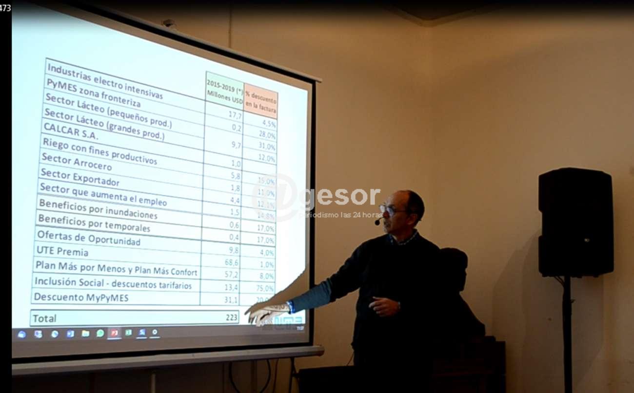 “Con la revolucionaria modificación que tuvo la matriz eléctrica han bajado en U$D 500.000.000, lo que son los costos de generación. Y en vez de explicar porque subieron las tarifas podemos mostrar que han bajado respecto al índice de precios al consumo o respecto al costo de vida y es básicamente eso es por el cambio de la matriz y la gestión que tiene asociada” señaló del Ing. Gonzalo Casaravilla.