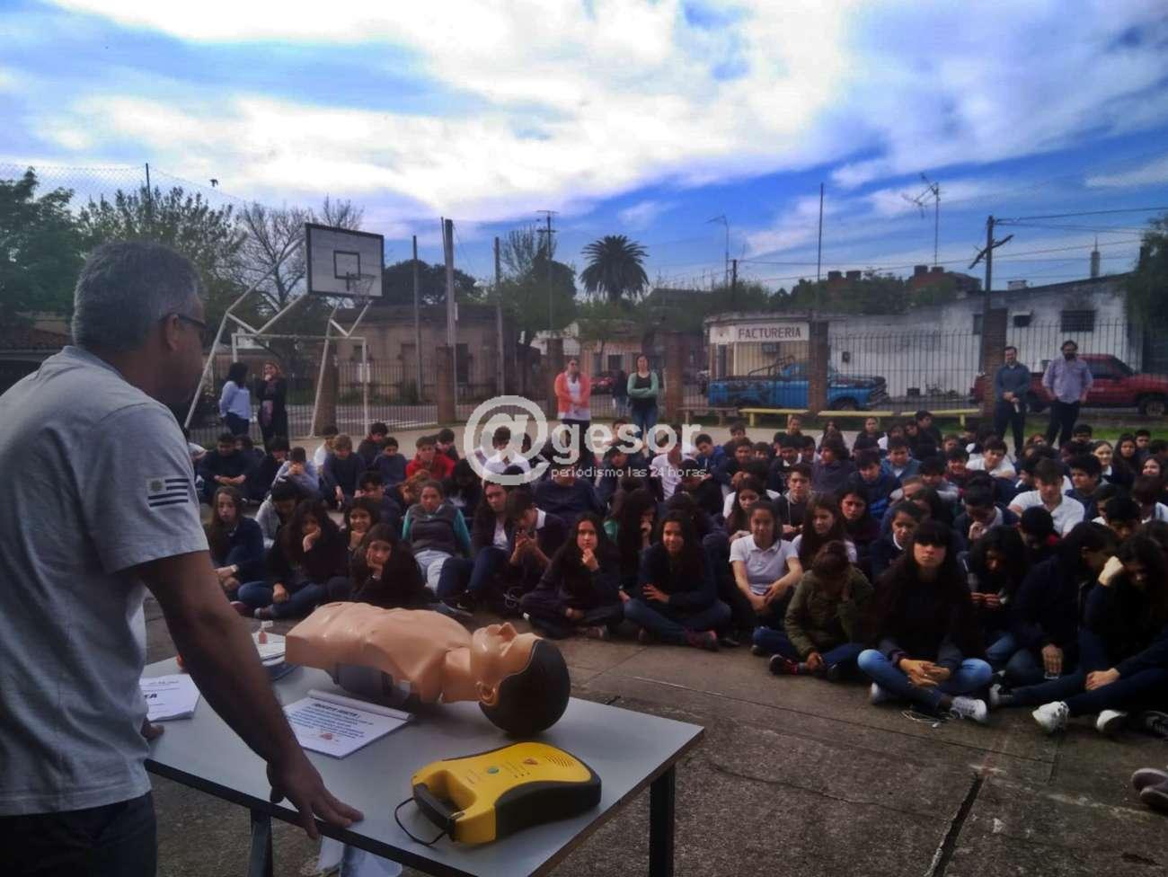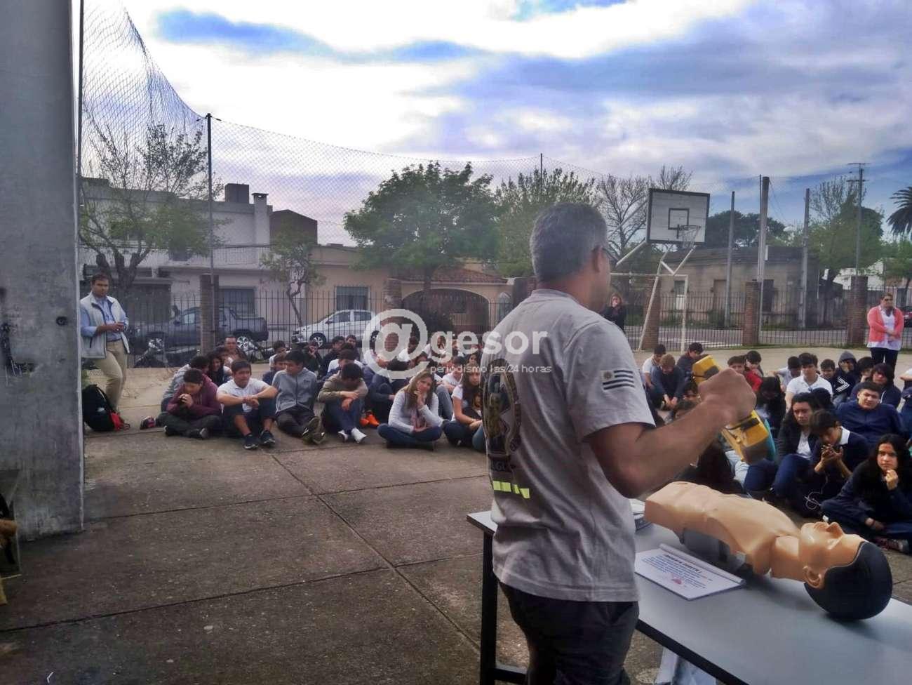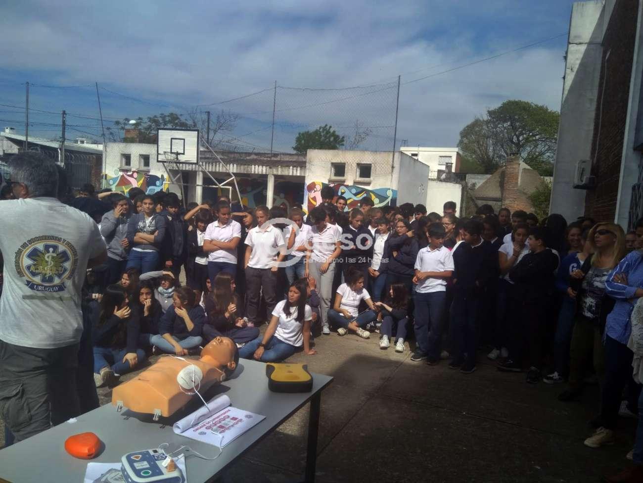 Este martes se llevó a cabo jornada de capacitaciòn y concientización sobre la importancia de tener conocimientos básicos para Reanimación Cardiopulmonar (RCP) y el uso de los DEA (Desfibriladores), llevada a cabo por los facilitadores de la Agrupación de Socorristas y Primera Respuesta Uruguay (ASPRU) Mauro Maneiro y Mariana Moreno. La actividad fue desarrollada en instalaciones del Liceo 3 "Gregorio Cardozo" con la participación casi 400 alumnos que siguieron las indicaciones de los instructores, en una temática de gran actualidad y suma importancia.
