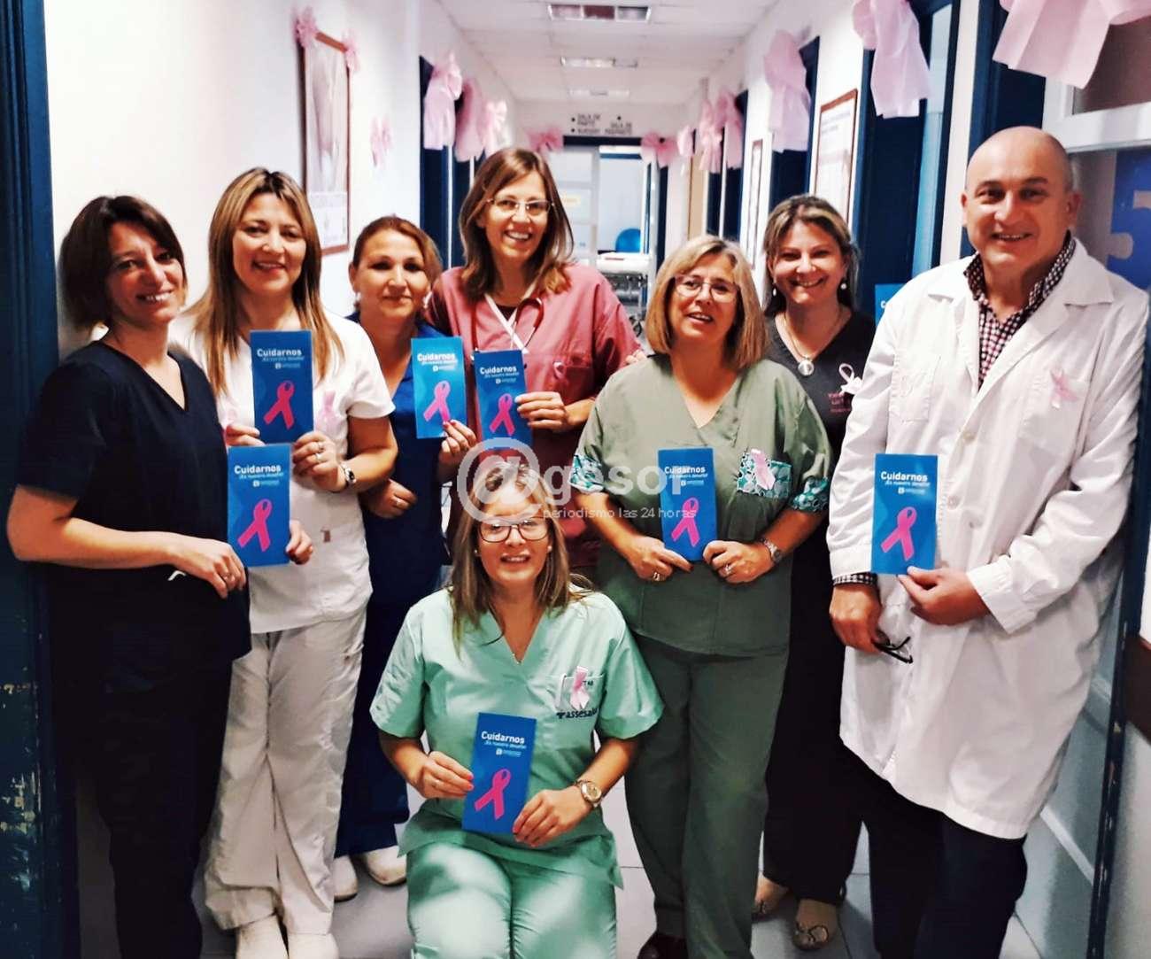 En el marco de la conemmeoración del Día Mundial de lucha contra el cáncer de mamá, el Hospital de Mercedes "Zoilo A. Chelle" de ASSE, luce en su interior distintivos y material informativo todo color rosa, relacionado precisamente con la lucha contra este flagelo.