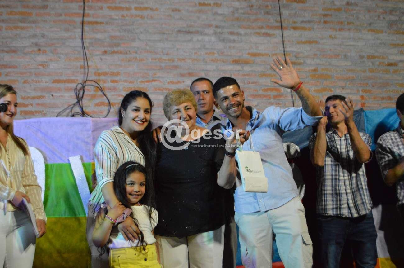 Por eso, añadió Pintos, "queremos agradecer a una persona que estuvo con nosotros desde el arranque y sabemos que seguiremos contando con ella, que a pesar del frío, a veces de alguna garúa o simplemento no contaba con locomoción pero ella estaba firme con su olla su cucharón y su delantal y estamos hablando de la señora María Villar a quien pedimos se acerque al escenario para hacer entrega de un presente de los que formamos parte de esta tarea tan linda... Gracias".