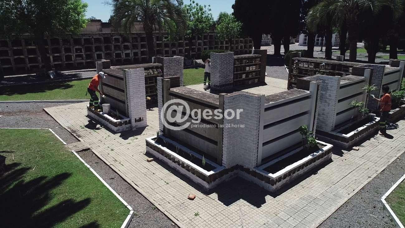Estas acciones de reacondicionamiento general son llevadas adelante por obreros del Dpto. de Arquitectura con apoyo de personal de la sección Necrópolis y de otras áreas de la comuna.