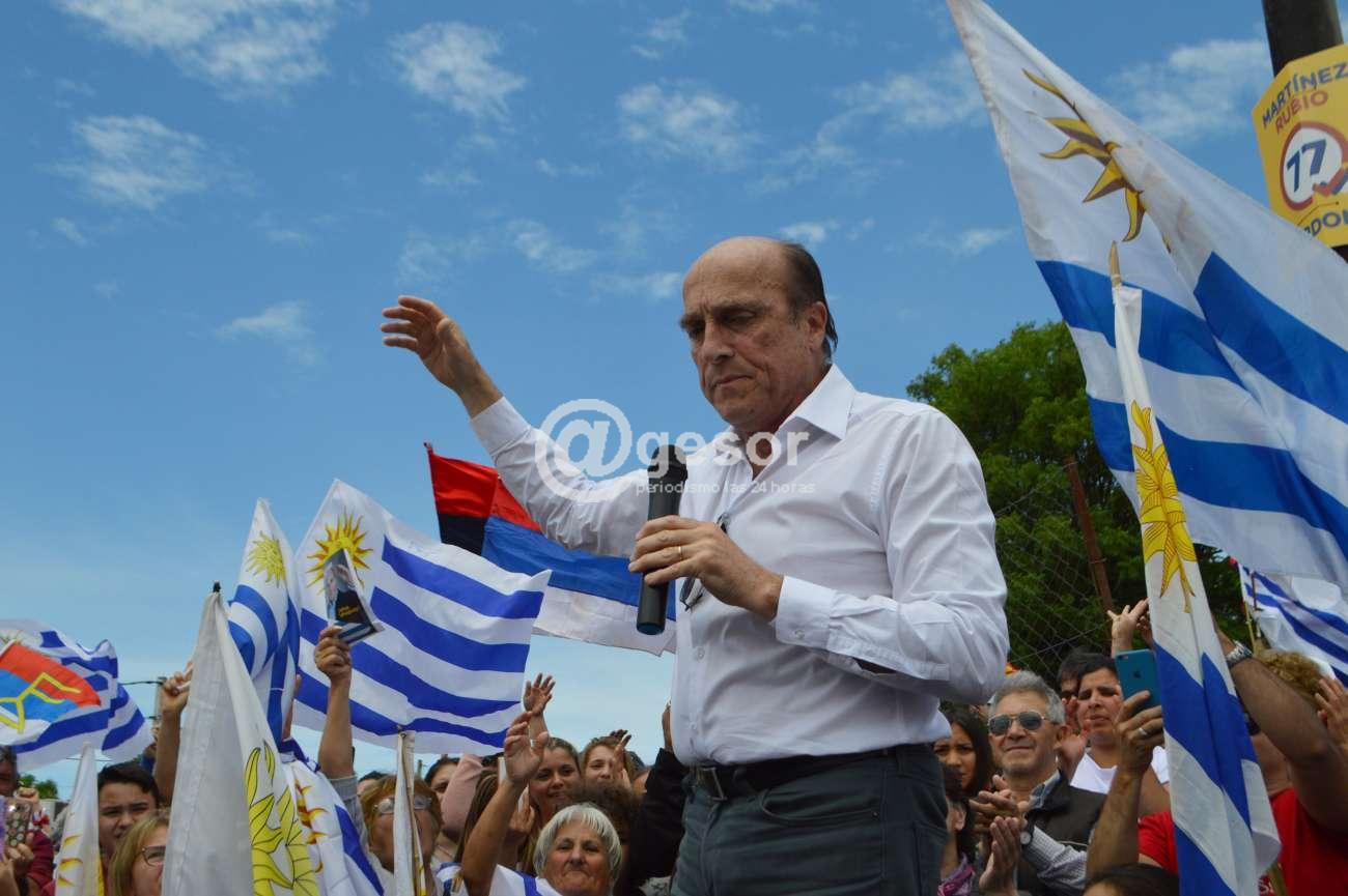 En un improvisado escenario sobre la caja de una camioneta, ubicada frente a la plaza de deportes del barrio Artigas de Mercedes, el candidato a la Presidencia de la República Daniel Martínez, se dirigió a los presentes en el marco de la gira denominada "voto a voto", de cara a la segunda vuelta de las Elecciones Nacionales que determinarán quien será el próximo Presidente de los uruguayos, el domingo 24 de noviembre.