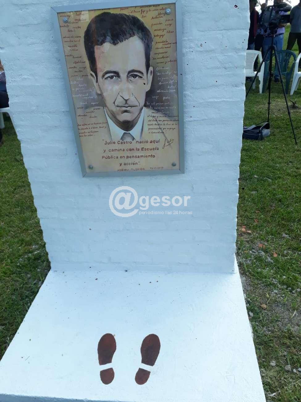 A 111 años del nacimiento, en la localidad que lo vio nacer, descubrieron un memorial en homenaje al maestro julio Castro. Fue este miércoles 13 de noviembre donde la comunidad de la Escuela N° 9 de La Cruz (ruta 5, kilómetro 116, Florida) descubrió un memorial para recordarlo.