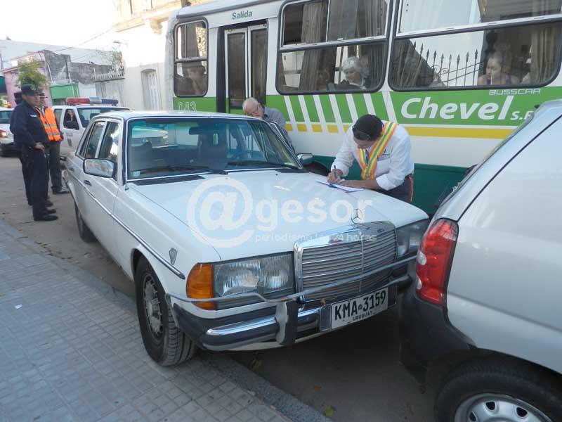 El siniestro se originó cuando el ómnibus de la empresa Chevel, Volkswagen 9150 matrícula KTC 1001 conducido por Nazareno Castro Cavalli con varios pasajeros a bordo, dejó calle Rodó y tomó Colón al Sur, cuando pasaba por frente a la Sociedad Italiana, una señora, María Anabela Viera Bartel mayor de edad, abrió la puerta del automóvil Mercedes Benz 300 D matrícula KMA 3159, no pudiendo evitar el ómnibus, llevarse por delante la puerta, corriendo el auto, que a su vez subió con una de sus cubiertas delanteras sobre la acera impactando contra el Suzuki Marutti KDA 4093 de Liliana Mónica Monza Labadie que estaba estacionado delante del Mercedes Benz golpeándolo en la parte posterior.