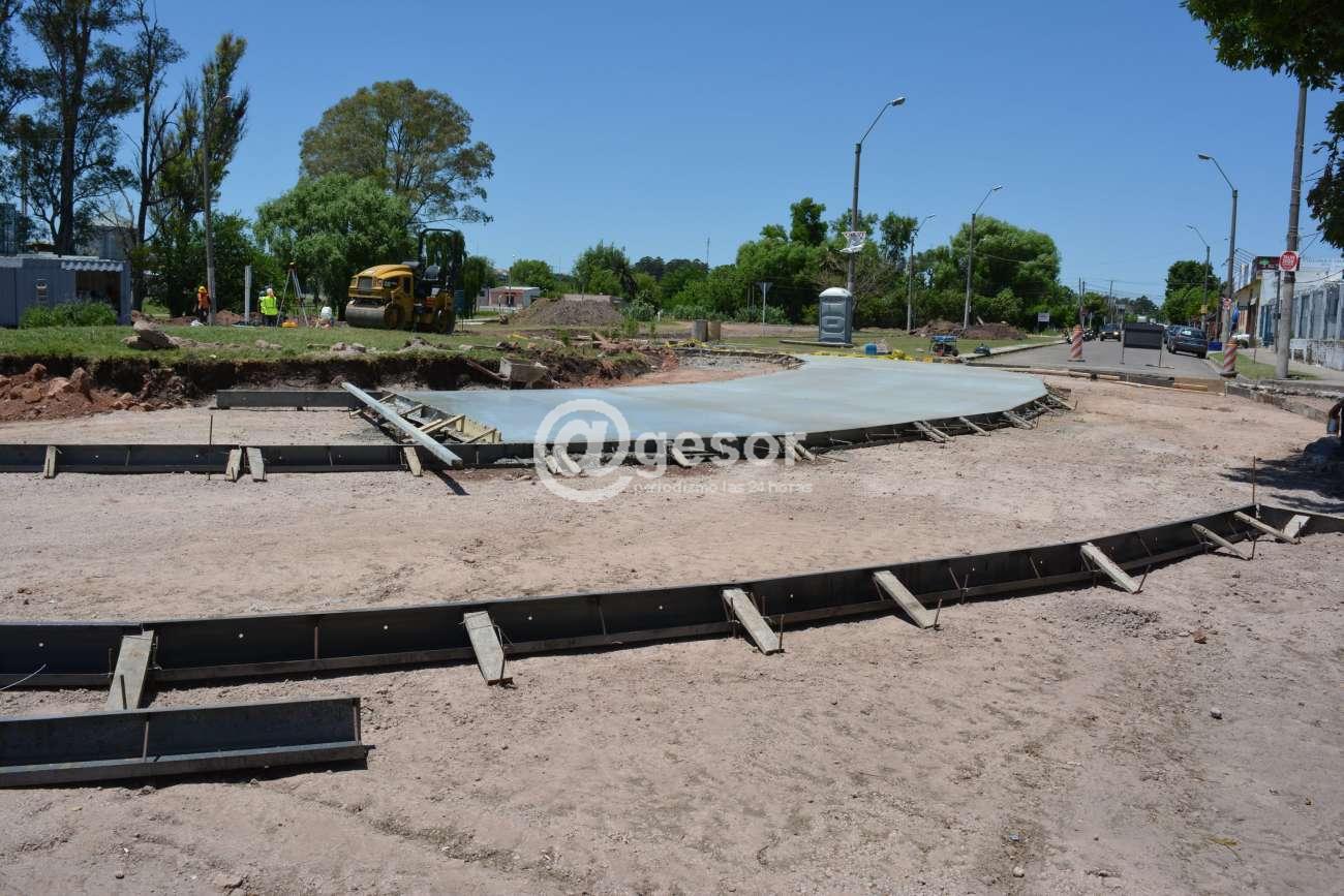 Comenzó a conformarse la calzada de hormigón armado en torno a la rotonda de Luis A. de Herrera y Wilson Ferreira Aldunate.