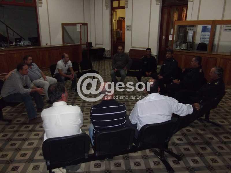 En la noche de este jueves el Concejo Municipal de Dolores comandado por el alcalde, Javier Utermark, junto a los concejales Dr. Ramón Mastandrea, Walter Sasso, Mario Sergio Camacho y Willy Malatés, recibieron la visita de autoridades policiales de nuestro departamento. La delegación estuvo integrada por el Comisario Inspector Lázaro Cruz (encargado de coordinación ejecutiva de la Policía de Soriano), Comisario Gustavo Castro ( jefe del grupo GEPO), Comisario José Fernández Lares (Dirección de Seguridad) y el Sub Comisario Luis Astigarraga (encargado de Seccional 5ª de Dolores), para hablar e intercambiar ideas sobre la seguridad y el tránsito en la ciudad.