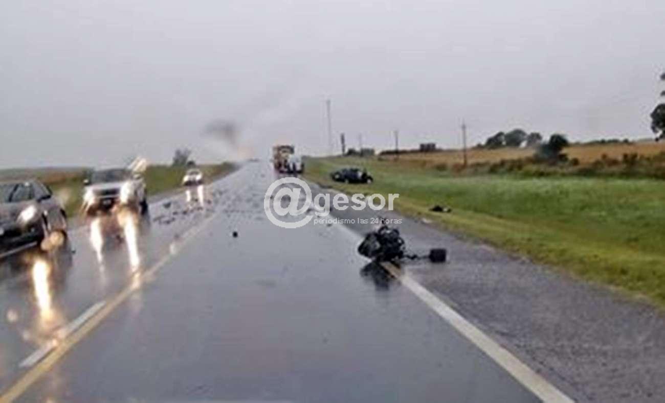 A raíz de la intensa lluvia de la tarde el automóvil sufrió aquaplane lo que determinó que perdiera el dominio su conductor e impactara de frente con la camioneta y terminaran fuera de la ruta ambos, inclusive el automóvil perdiendo el motor.