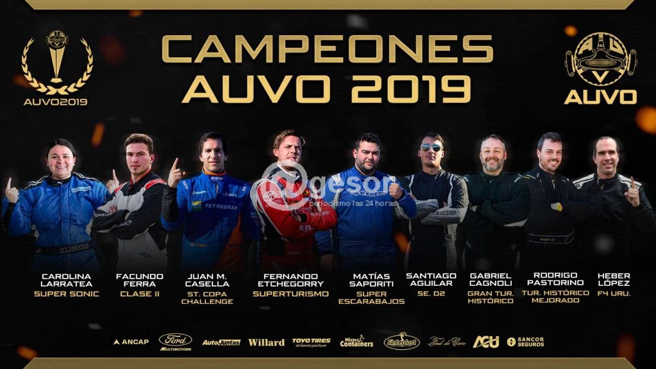 Alzaron su copa de campeones: Fernando Etchegorry (Superturismo), Juan Manuel Casella (Copa Challenge), Matías Saporiti (Superescarabajos), Santiago Aguilar (Superescarabajos D2), Heber López (Fórmula 4 Uruguaya), Gabriel Cagnoli (Gran Turismo Histórico), Rodrigo Pastorino ( Turismo Histórico Mejorado), Facundo Ferra (Clase II), Carolina Larratea (Súper Sonic), por equipos, Petrobras obtuvo la máxima distinción.