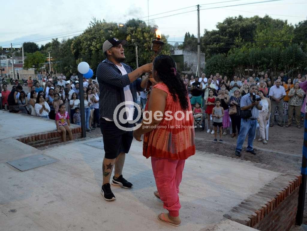 El acto de inauguración en la tarde de este sábado, se inició recibiendo la antorcha de los coopeerativistas de COVIUNION K, último complejo inaugurado.