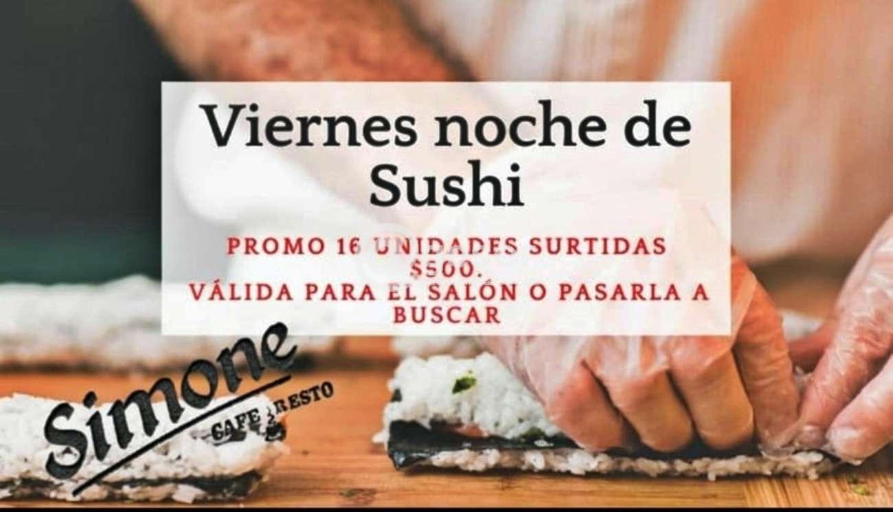 Este viernes 3 de enero noche de Sushi en SIMONE Café & Resto, con promo especial de 16 unidades surtidas a $ 500, válida tanto para degustarlas en el salón de avda. Lavalleja y Sánchez como para pasarla a buscar solicitándola previamente a través de nuestras redes sociales o por el tel. 4533 8713 o el cel. 097 957 262.