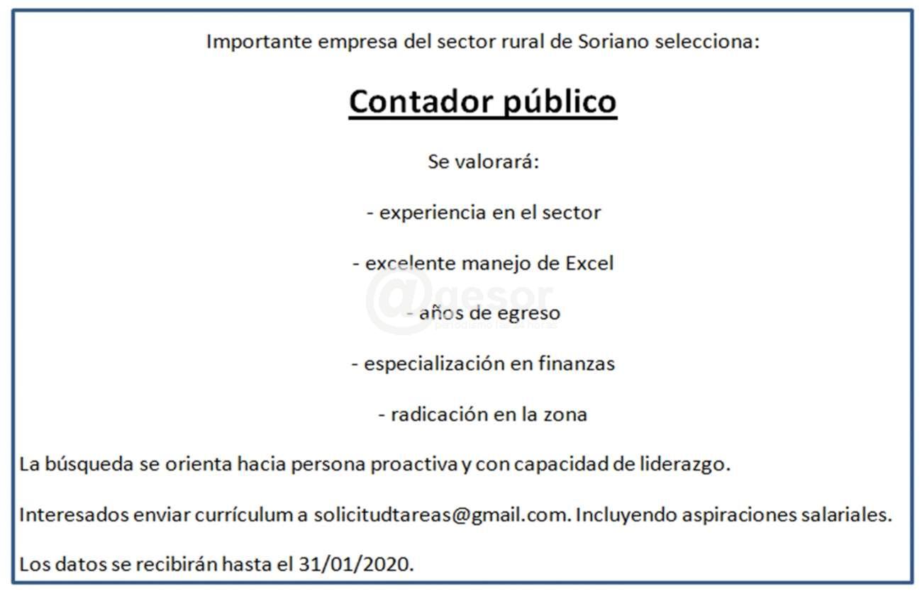 Interesados eviar currículum a solicitudtareas@gmail.com. Incluyendo aspiraciones salariales.