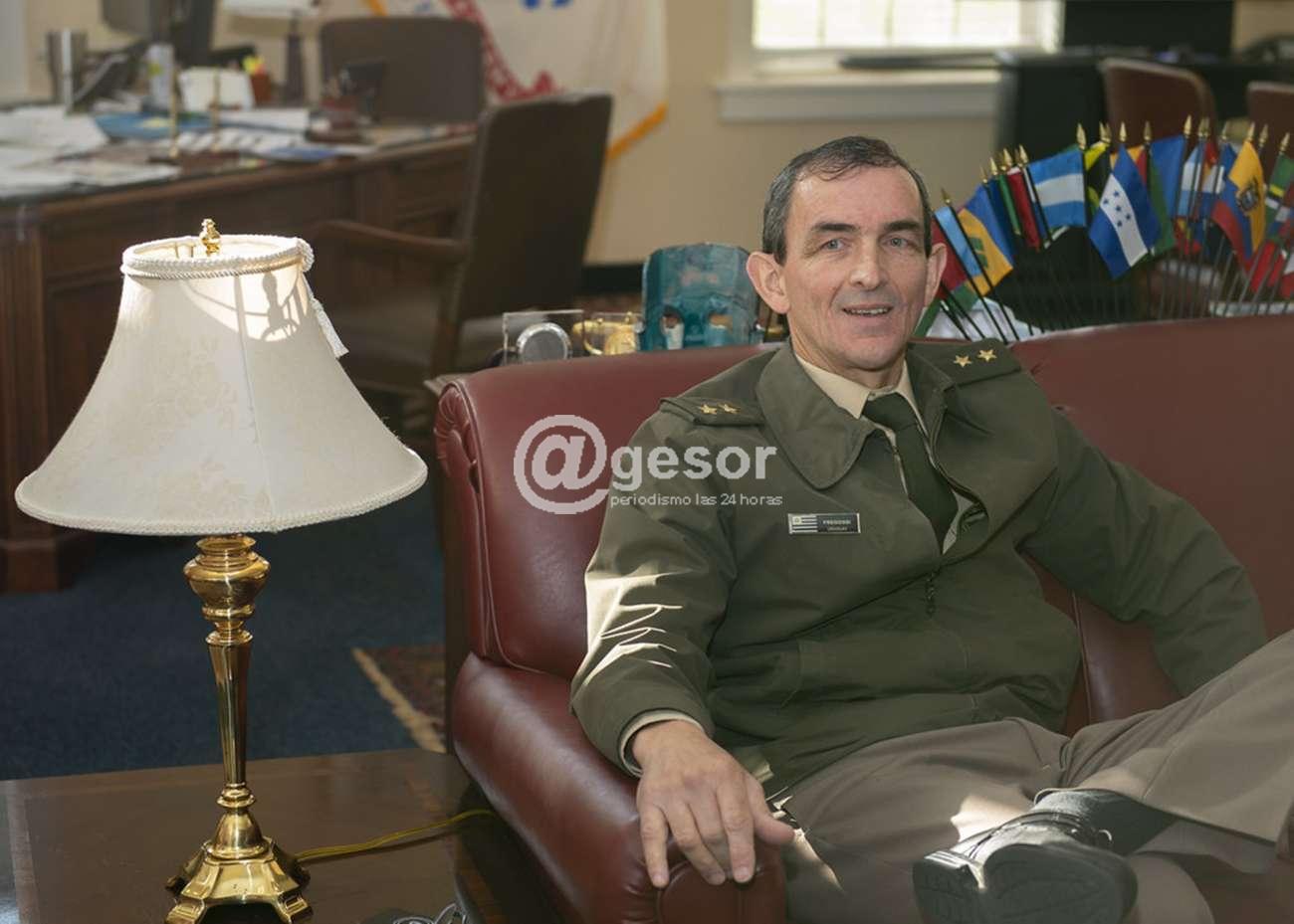 En la fotografía el nuevo Jefe de la Delegación de Uruguay, Gral. Gerardo Fregossi el 21 de noviembre 2019 durante su visita al Colegio Interamericano de Defensa en EEUU donde tuvo una reunión con el Mayor General James E Taylor, recibió una sesión de información sobre la historia de Colegio y recorrió el campus.