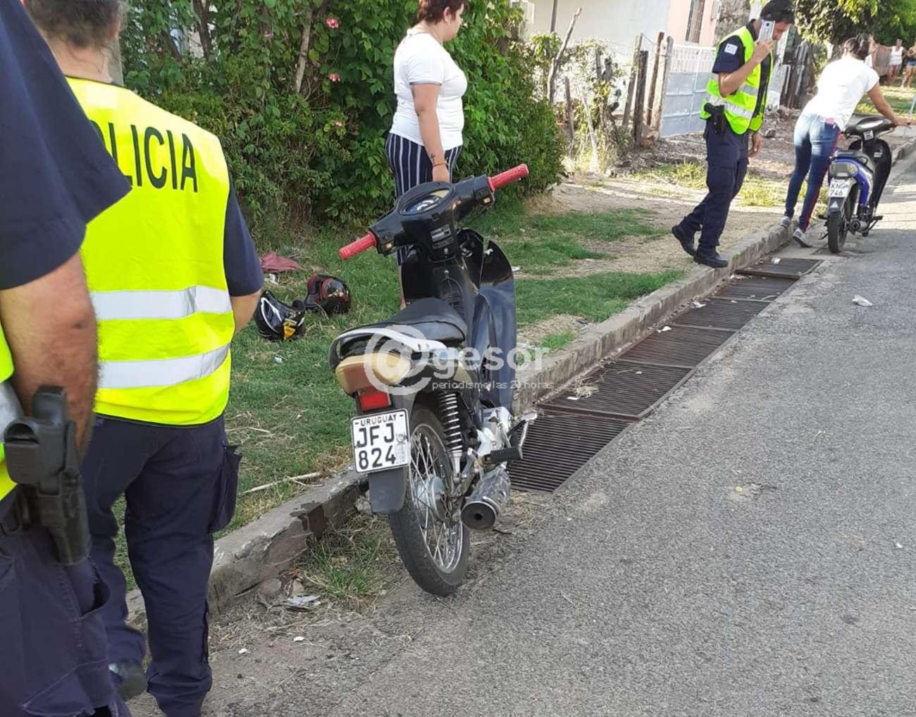 En la tarde de este domingo ocurrió siniestro de tránsito en el que participaron dos motos, que colisionaron en la intersección de calles 33 Orientales y Manuel oribe de Mercedes, donde impactaron la moto Winner Fair matrícula JFJ 824 y la moto Honda 70 cc KNH 1807. De la colisión surgió con lesión que determinó su traslado en emergencia móvil a centro asistencial el conductor de una de las motos, joven masculino de iniciales J.F. que recibió golpe en la cabeza, mientras que la otra moto era guiada por una adolescente de 17 años que no habría sufrido heridas de consideración.