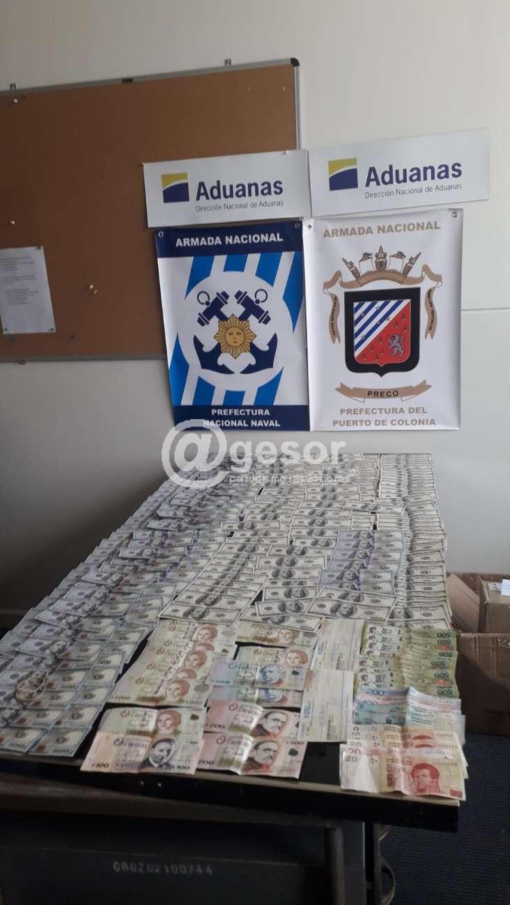 El dinero encontrado en el equipaje del visitante, luego de su contabilización, arrojó como resultado las siguientes cantidades: 24.600 dólares americanos, 6.700 pesos argentinos, 10.500 pesos uruguayos y dos cheques del Banco República por un valor de 2.300 dólares cada uno, la fecha de emisión de los mismos es 02/02/2020, dirigidos a quien los transportaba.