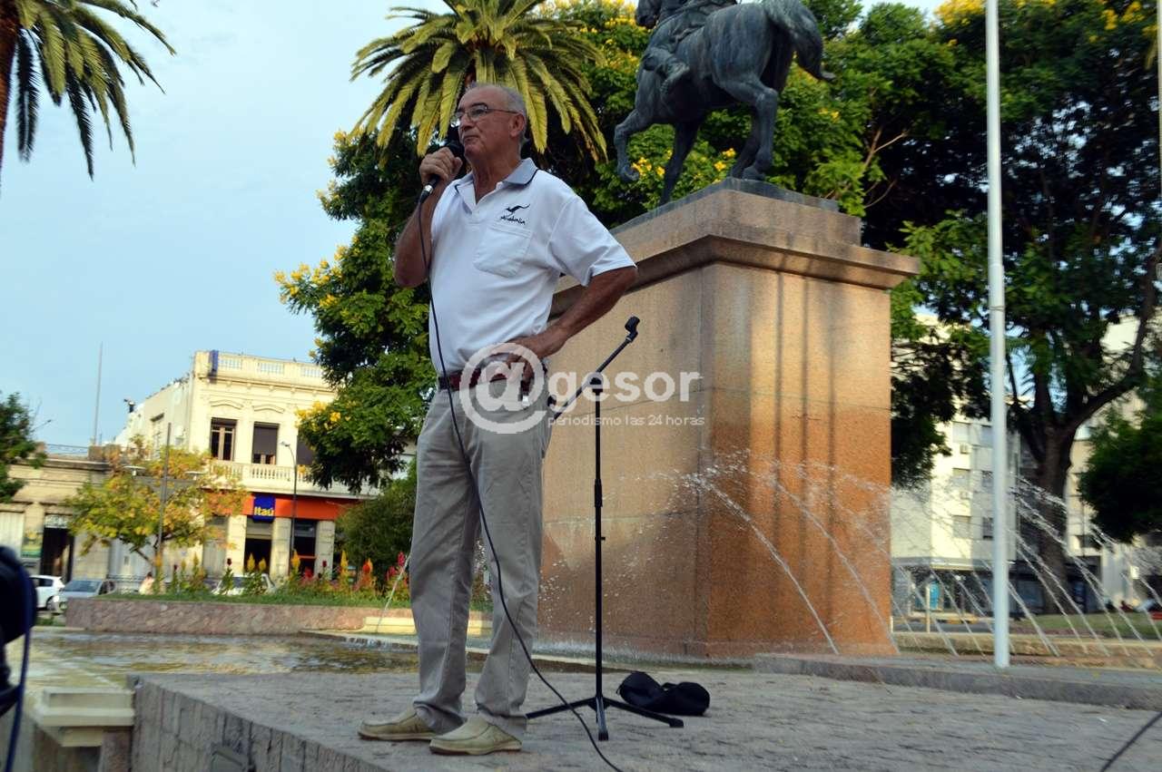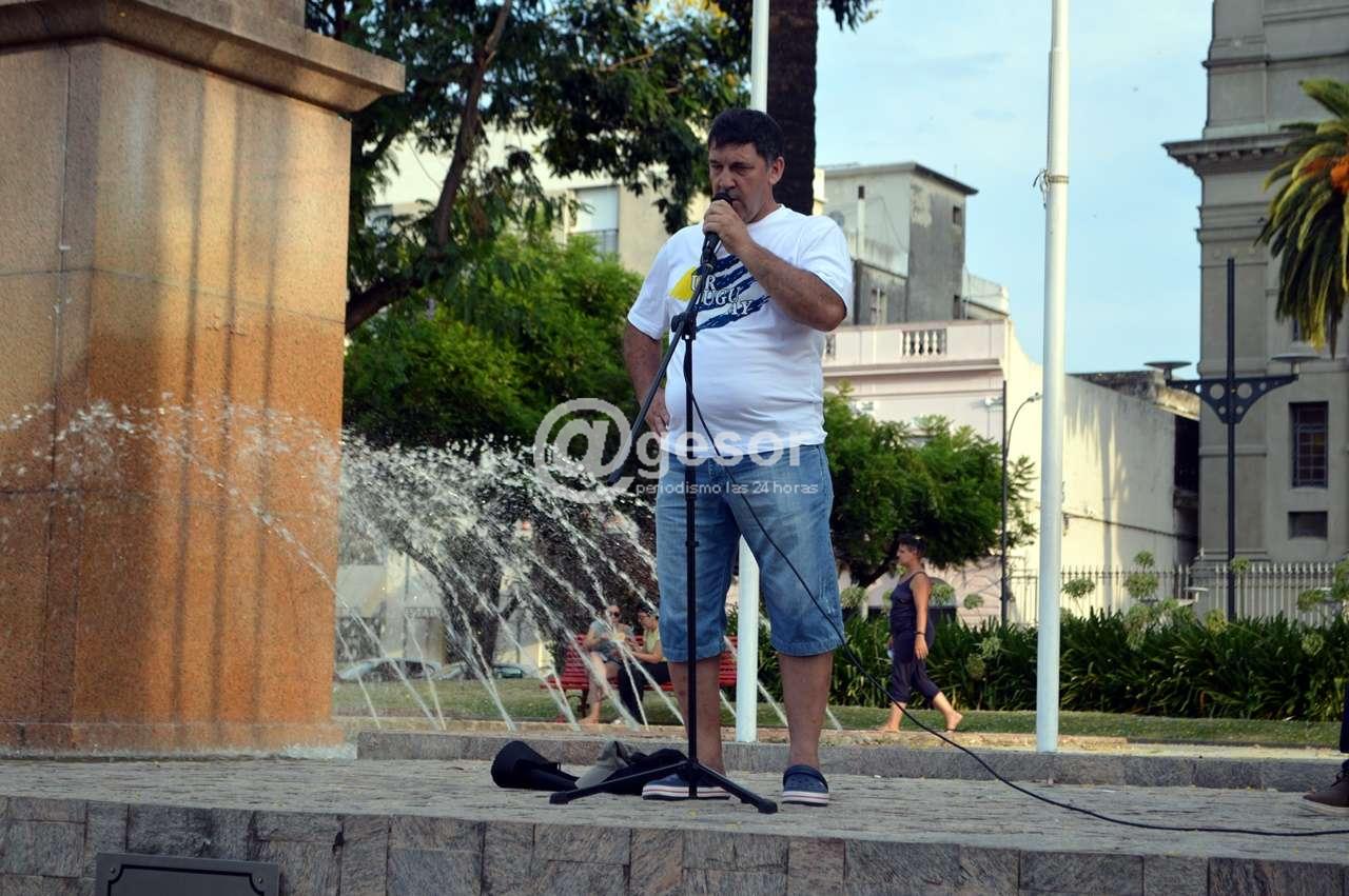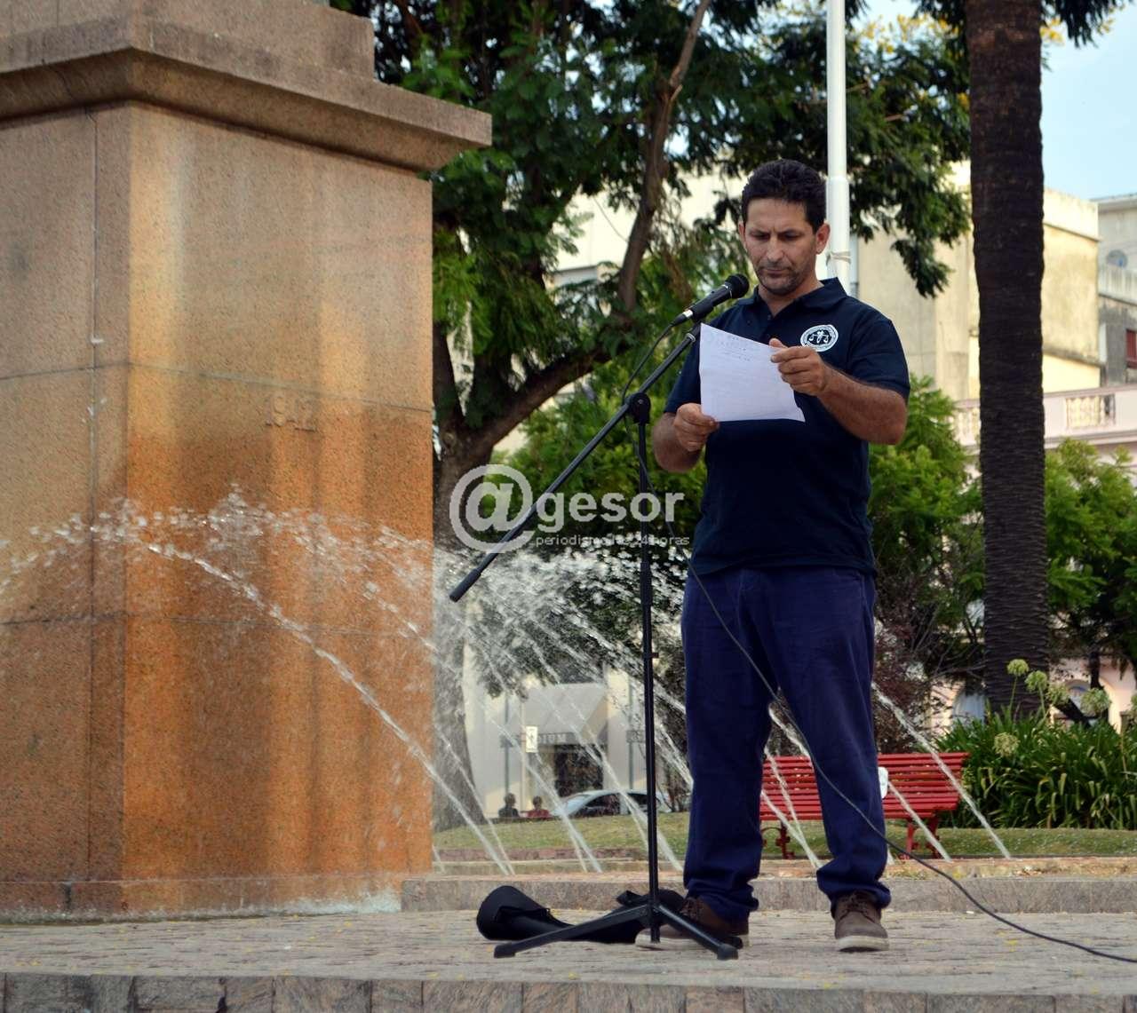 Juan Naglieri, dirigente departamental del SUPU, dio lectura a una proclama tras realizar un minuto de silencio y la entonación del himno nacional uruguayo.