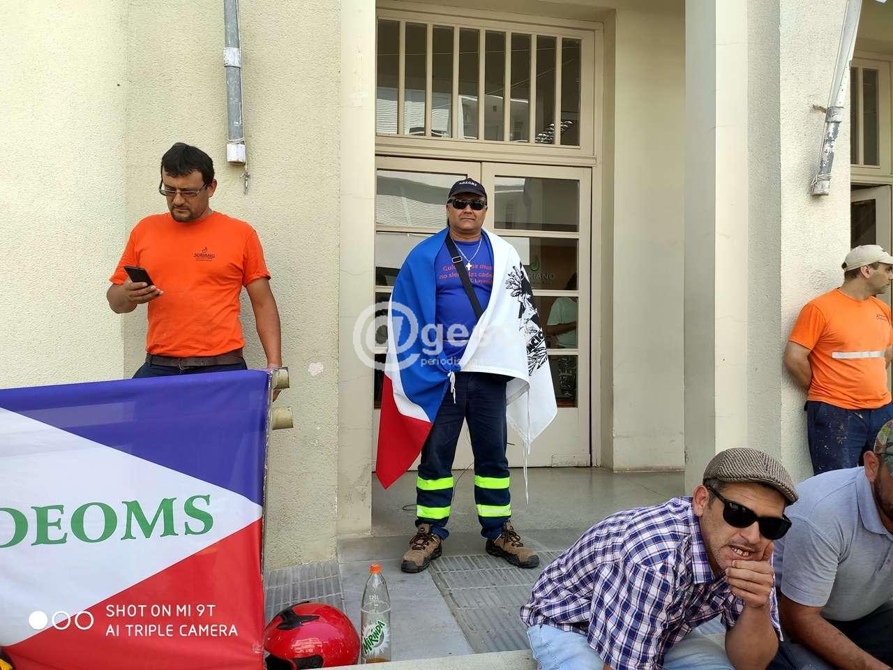 ADEOMS, llevó adelante medidas gremiales este lunes, entre ellas, procediendo al encadenamiento de funcionario frente a las puertas del palacio Municipal en Mercedes.
