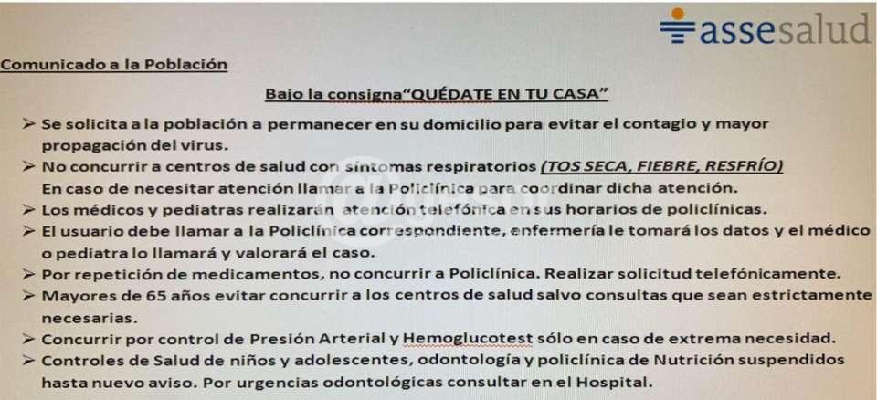 El resto de las consultas se reagendarán de acuerdo a la SITUACIÓN SANITARIA DEL PAÍS.