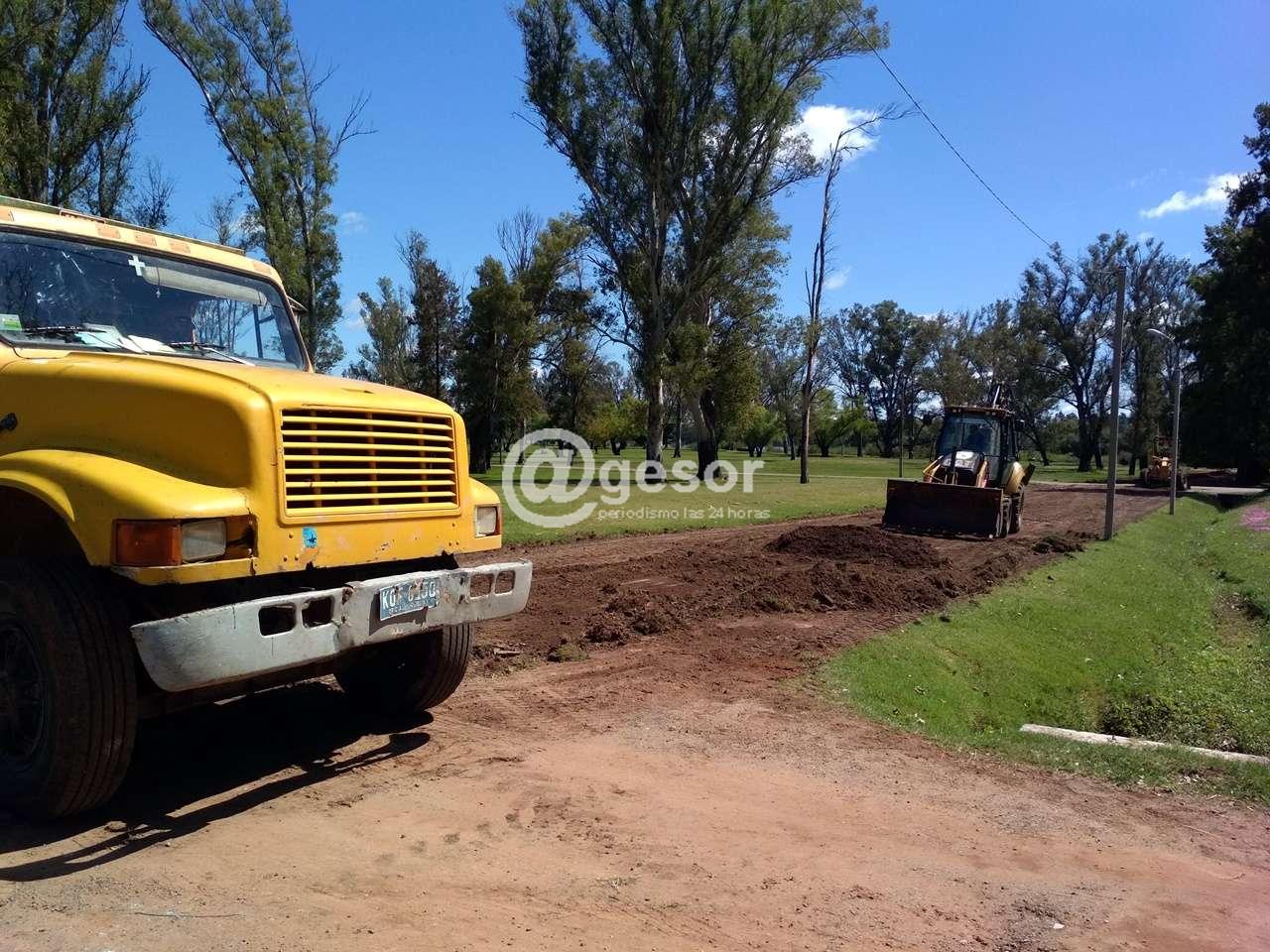 Personal y maquinaria del Dpto. de Obras de la Intendencia de Soriano trabajan en la recuperación de las calles internas del parque “Guernika” en Mercedes.