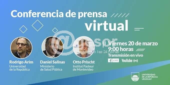 “A fin de proteger la salud de la población y respetar las disposiciones establecidas por las instituciones firmantes, la conferencia se realizará a través de la plataforma zoom y se transmitirá vía streaming por el canal de Youtube y de redes sociales de la Universidad”, se anunció. Esta conferencia de prensa sobre el trabajo desplegado por los profesionales e investigadores sobre el trabajo que se viene desplegando en el país es encabezada por el Ministro de Salud Pública, Daniel Salinas, el Rector de la Udelar, Rodigo Arim, y Otto Prischt Director del Instituto Pasteur en Montevideo.