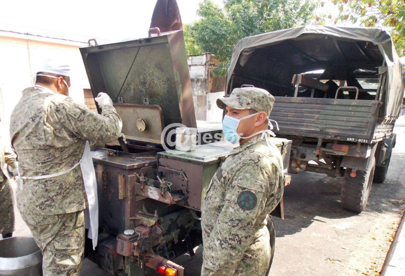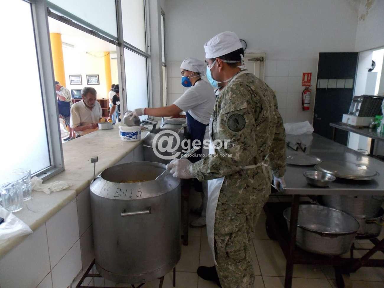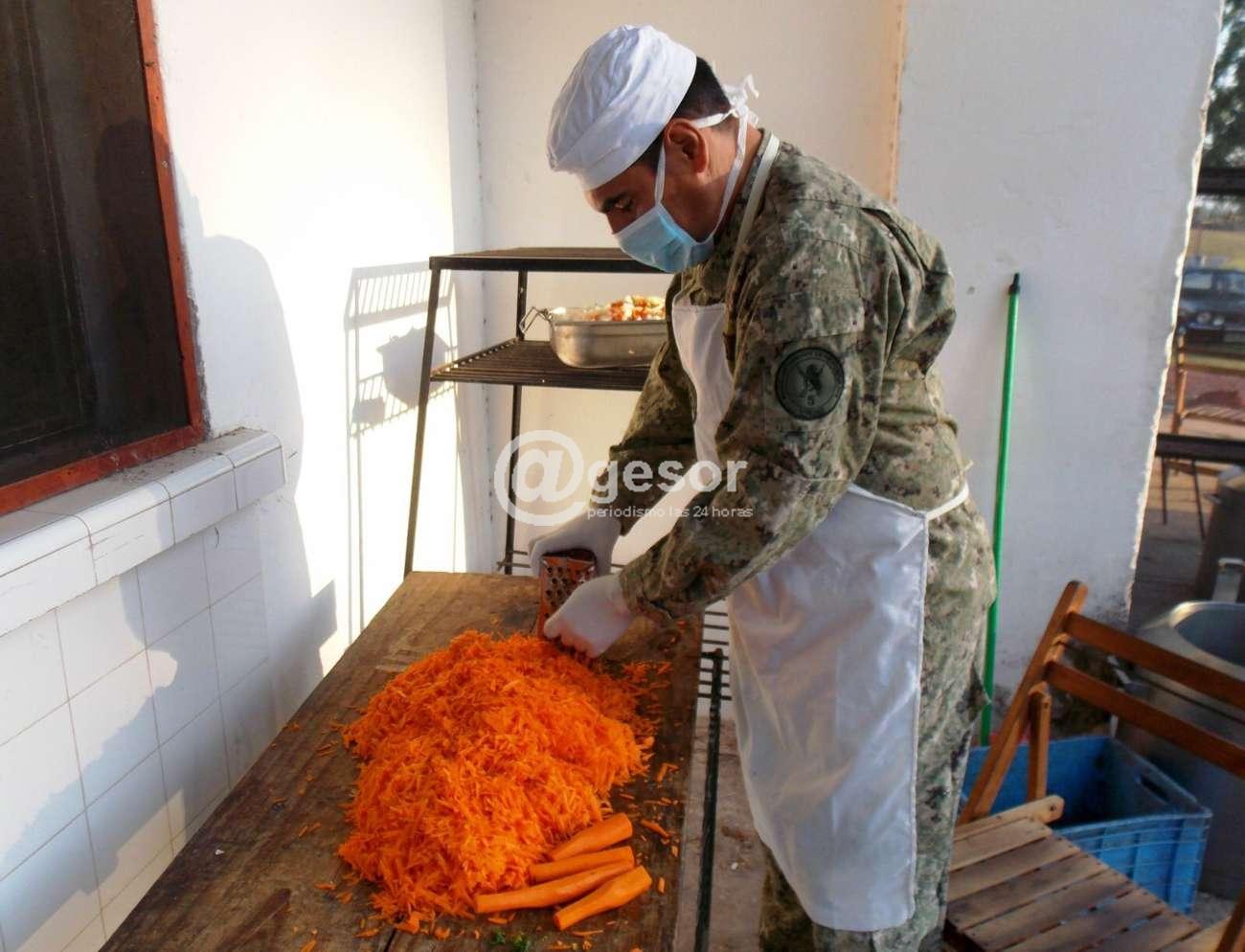 Como forma de darle descanso al personal del comedor de la Intendencia de Soriano con apoyo del INDA este domingo personal del Batallón "Asencio" de Infantería estuvo cocinando y distribuyendo la alimentación entre las personas que concurren al comedor ubicado en el restorán de Rivera y Rodó en la capital sorianense, donde promedialmente se atienden a diario 400 personas y más, habiéndose incrementado la cantidad de inscriptos por el departamento de Acción Social y Familia de la Intendencia, a cargo de María Fajardo, en más de 170 tarjetas otorgadas durante esta emergencia sanitaria, por lo que los habilitados superan los 450.