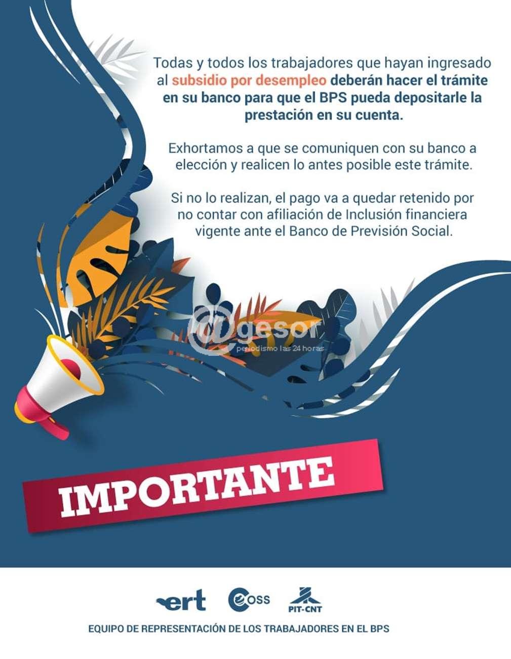 Desde el Equipo de representación de los trabajadores (ERT) en el BPS se exhorta a que se comuniquen con su Banco a elección y realicen lo antes posible este trámite.
