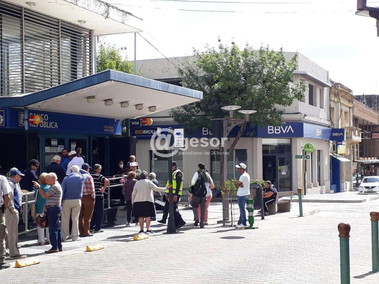 Un importante número de personas concurrieron sobre la mañana de este viernes al local del Banco República (BROU), para percibir los haberes correspondientes al beneficio de jubilaciones, provocando una larga fila con aglomeraciones, algo contraindicado en estos tiempos.