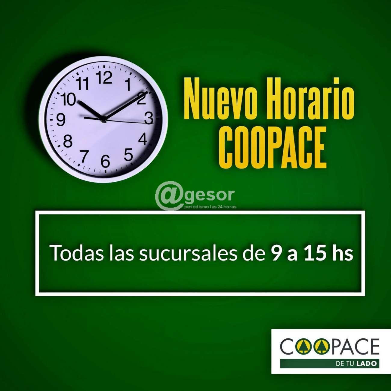 COOPACE comunica a través de @gesor que la atención a sus socios tiene nuevo horario en todas sus sucursales, y que los espera de 9.00 a 15.00 horas para seguir brindándoles el mejor servicio con los productos acores a las necesidades de cada uno.