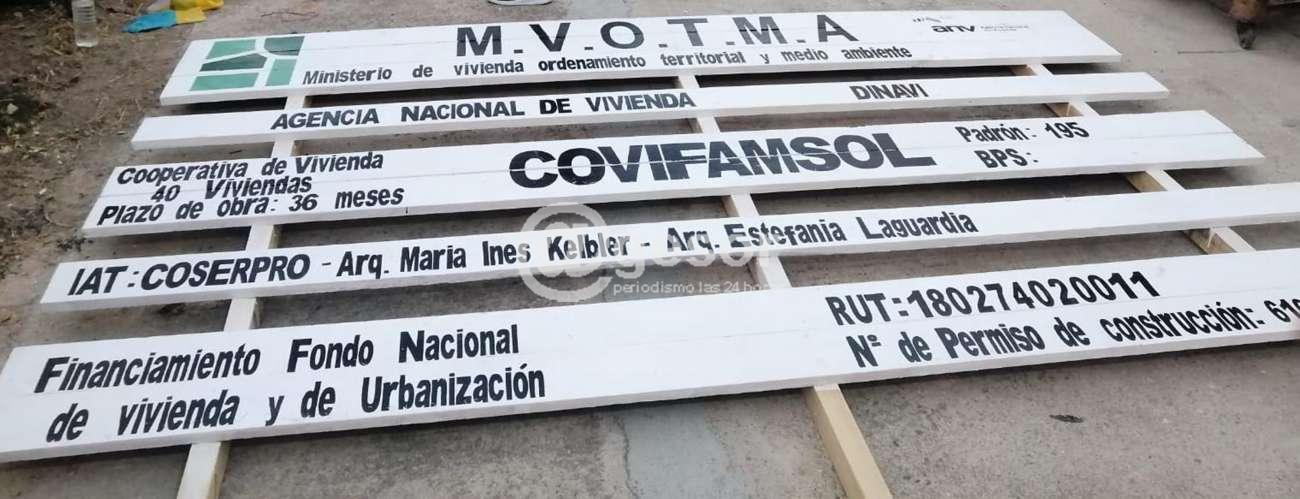 La cooperativa de viviendas por el sistema de ayuda mutua COVIFAMSOL de Palmitas, firmó este lunes, la escritura por el préstamo para la construcción del complejo habitacional de 40 unidades que comenzarán a construir en el terreno propio ubicado en Carlos Reyles y Magallanes (exterreno de Bardanca).