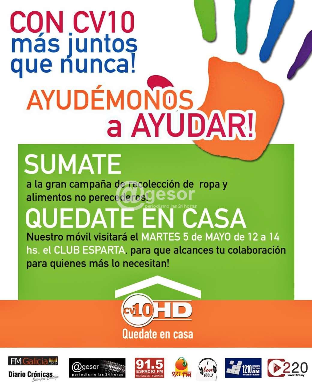 Este martes 5 de mayo el móvil de CV10 estará en el Club Esparta de 12.00 a 14.00 horas con el apoyo de @gesor y otros medios de comunicación para que alcances tu colaboración para quienes más lo necesitan en una campaña solidaria de recolección de ropa y alimentos no perecederos. ¡Te esperamos!