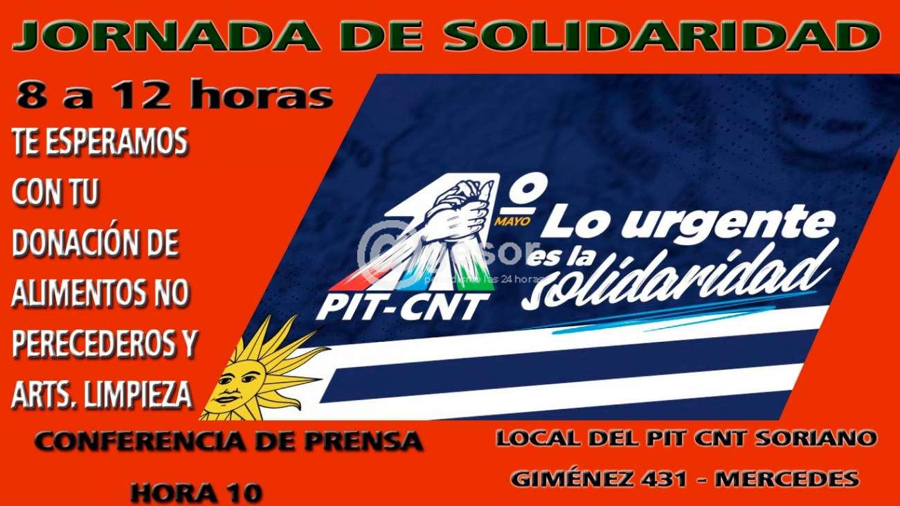Bajo la consigna "lo urgente es la solidaridad" el PIT CNT Soriano, desarrollará la Jornada Solidaria, este 1º de mayo de 8 a 12 horas, en su local de calle Giménez 431.