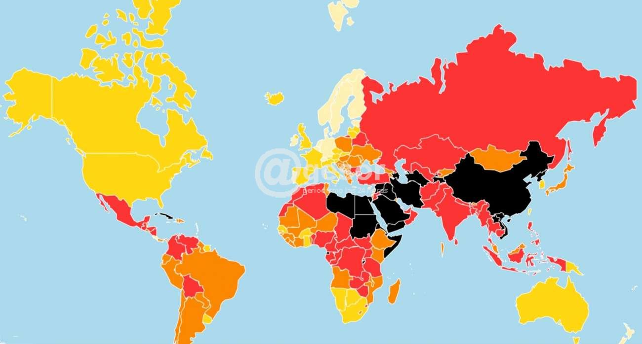 Existe una clara correlación entre la represión de la libertad de prensa registrada durante la crisis del coronavirus y el lugar que ocupan los países en la Clasificación Mundial de la Libertad de Prensa. China (177º) e Irán (173º, -3), epicentros de la pandemia, establecieron dispositivos de censura masivos. En Irak (162º, -6) el gobierno suspendió la licencia de trabajo de la agencia de noticias Reuters durante tres meses, horas después de que esta publicase una nota que cuestionaba las cifras oficiales de casos de Covid-19. En Hungría (89º,-2) el primer ministro, Viktor Orbán, hizo que se aprobara una ley relativa al coronavirus que sanciona la difusión de noticias falsas con penas de hasta cinco años de prisión, una forma de coacción completamente desmesurada.