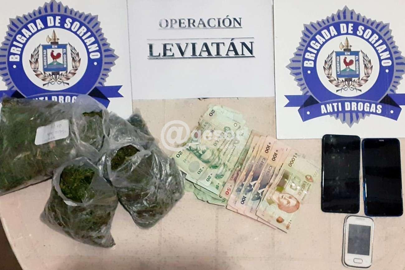 Continuando con las actuaciones se realizó un allanamiento del lugar, donde había varias construcciones precarias, incautando sustancia vegetal (817 gramos), 2.198 pesos uruguayos, tres teléfonos celulares y herramientas, deteniendo a dos personas, quedando una tercera requerida quien posteriormente se presentó de manera voluntaria.