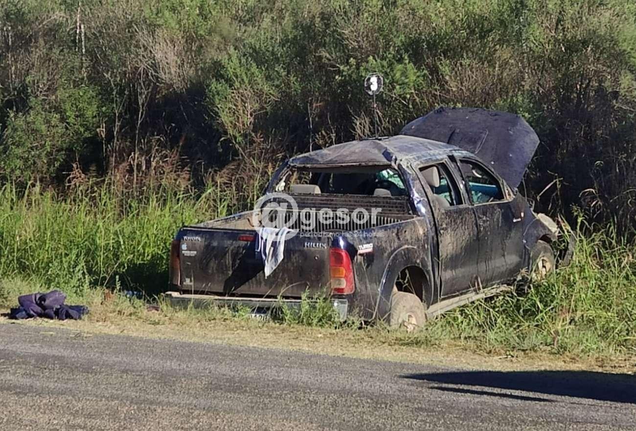 (Actualizado). Siniestro de tránsito ocurrió en la mañana de este jueves cuando por Ruta 95 circulaba desde Villa Soriano la camioneta Toyota Hilux matrícula KDA 8120 llevando en su interior al conductor y otras tres personas, quienes se dirigían a campo de Sacachispas con la finalidad de participar de tareas en la trilla.