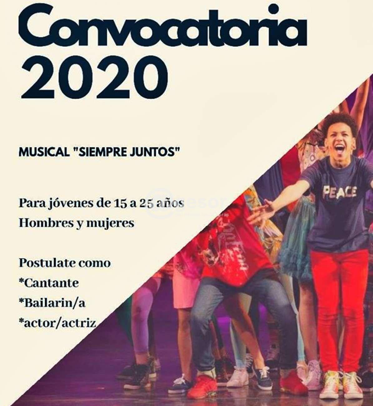 La convocatoria busca 20 jóvenes para el cuerpo de baile con experiencia, "pero por sobre todo con muchas ganas de aprender y sumar, 6 cantantes jóvenes con experiencia y sinceras ganas de querer participar y estar ya que los cantantes son de la parte principal del musical, y 5 personas en actuación sin experiencia, con ganas de aprender pero que no sean tímidas.