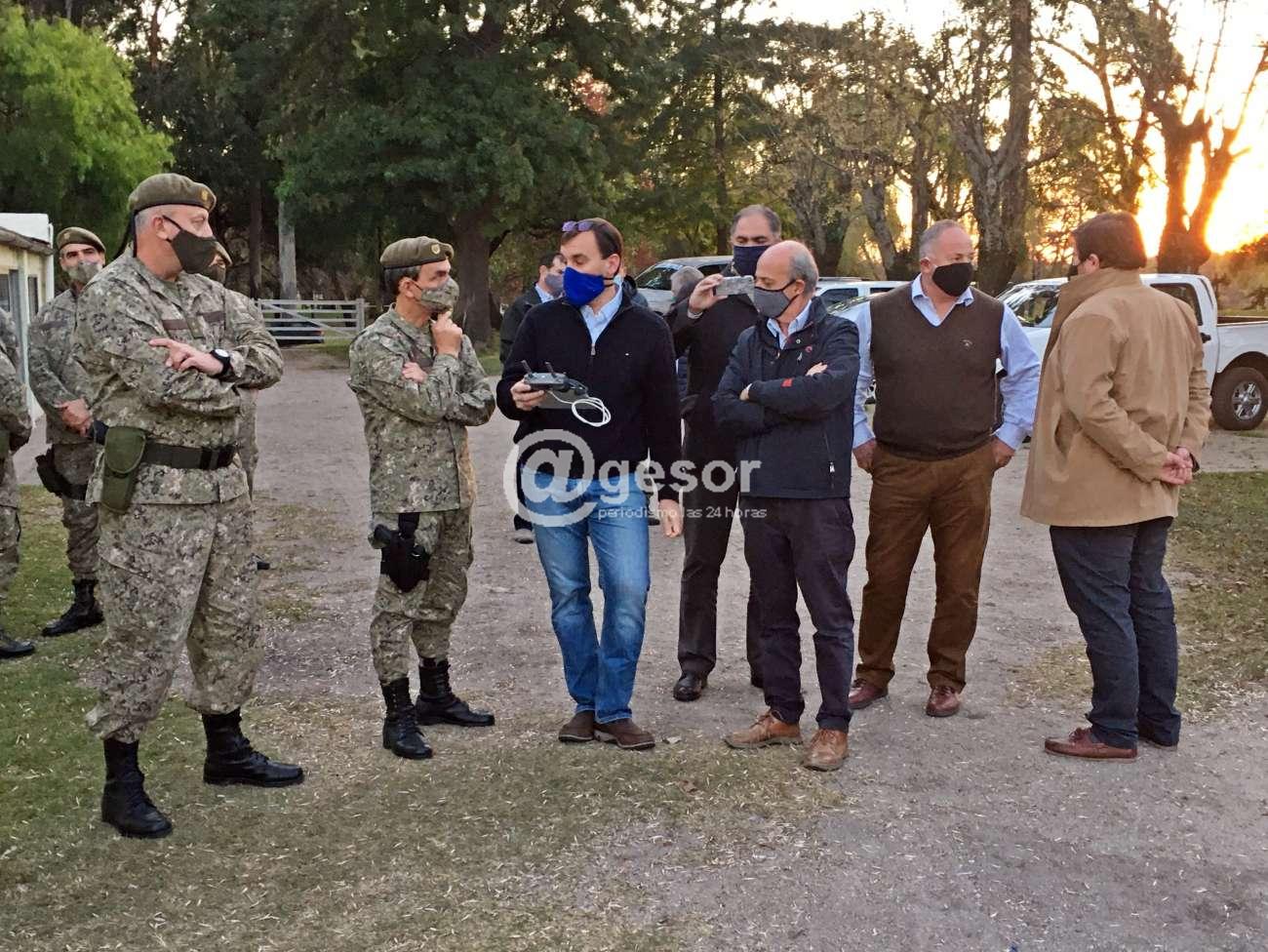 Dolores (por Alvaro Martínez). Durante la visita del Ministro de Defensa Dr. Javier García a Dolores para recibir la donación de un dron por parte de un grupo de productores rurales, el Comandante en Jefe del Ejército Gral. Gerardo Fregossi se refiriò al trabajo que vienen realizando en la franja de 20 km de la costa fronteriza señalando que "la mayor parte se hace sobre caminos, con gente controlando el tránsito, documentos de los conductores, los vehículos y a veces controlando carga. A veces vamos a estar solos, pero la ley, los decretos y nuestra intención es trabajar en conjunto con la Prefectura, con la Policía, siempre en contacto con la Fiscalía que es la que nos va a ir dando la parte legal, para quien vamos a ir produciendo información y a veces con gente de Ganadería y de Aduanas".