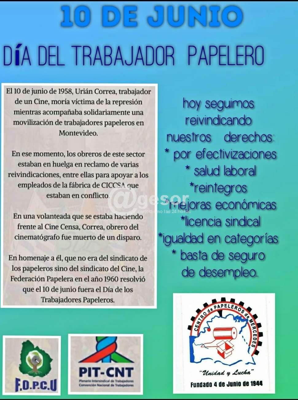 En homenaje a él, que no era del sindicato de los papeleros sino del sindicato del Cine, la Federación Papelera en el año 1960 resolvió que el 10 de junio fuera el Día de los Trabajadores Papeleros.
