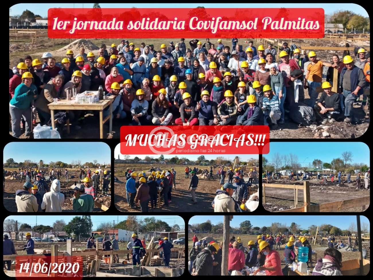 Un domingo especial para los socios de la cooperativa de viviendas por ayuda mutua COVIFAMSOL de Palmitas que está en la primera etapa de la construcción de su cpmplejo habitacional y en esta jonada desarrolló jornada solidaria con la presencia de más de 130 personas entre los socios, familiares y amigos, quienes ayudaron a avanzar en las obras que llevan adelante.