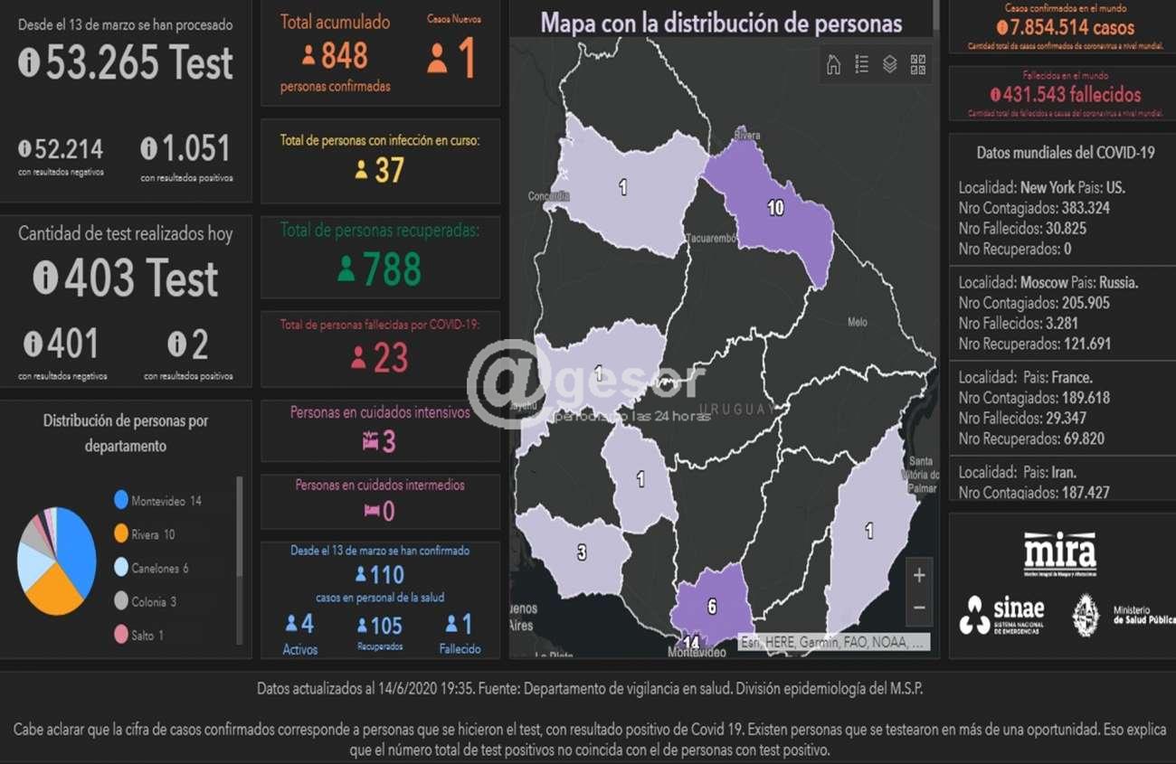 Los departamentos con casos hasta el momento son Canelones, Colonia, Flores, Montevideo, Río Negro, Rivera, Rocha y Salto.
