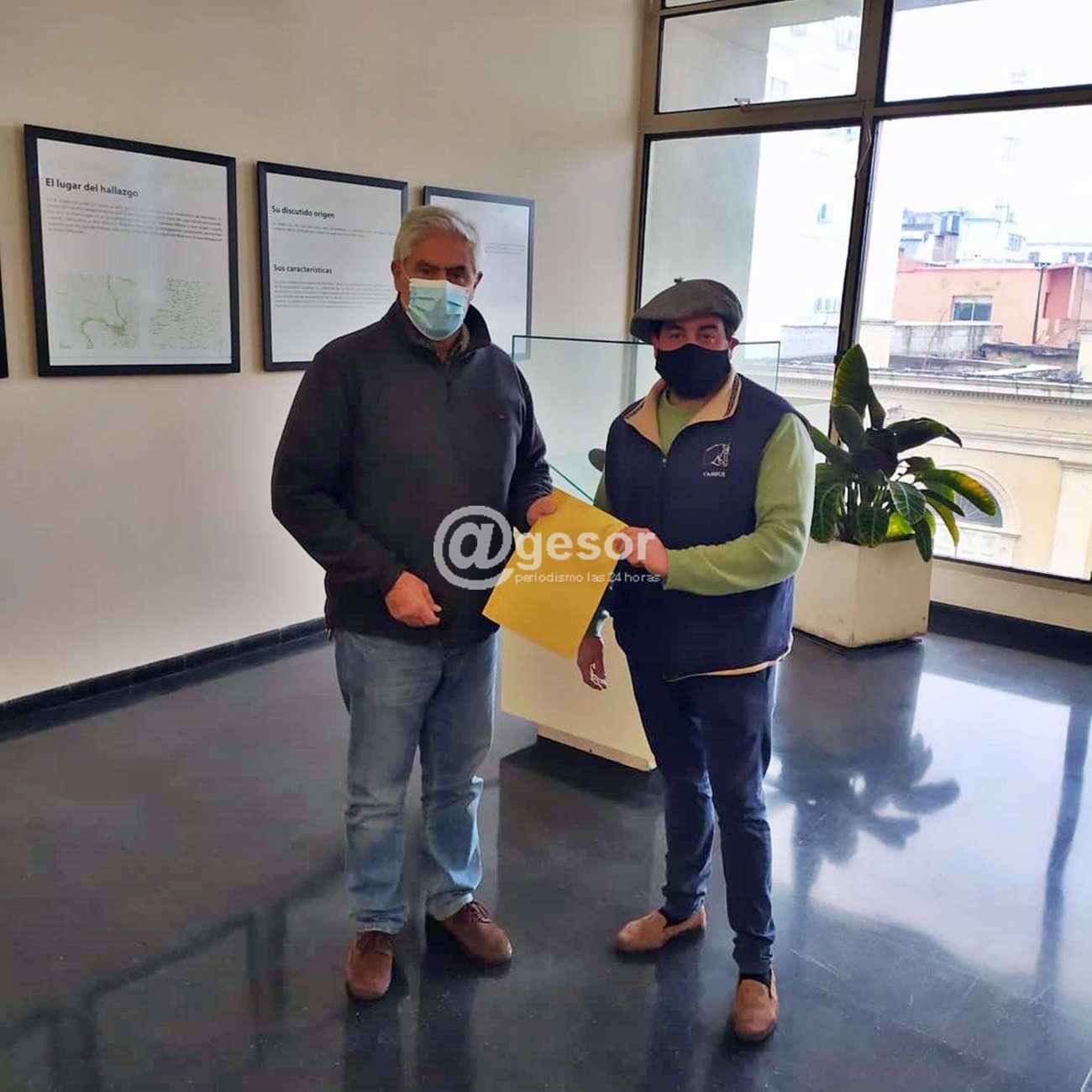 En la toma fotográfica vemos al Intendente de Soriano Agustín Bascou junto al delegado de las fuerzas vivas del turf, Rodrigo Pinto.